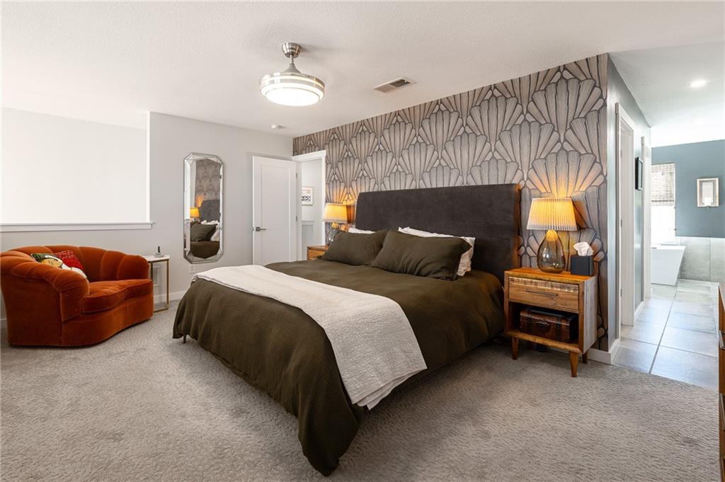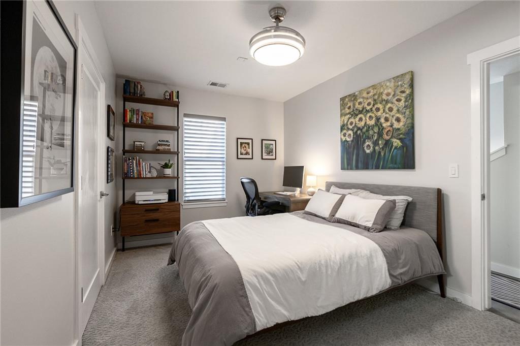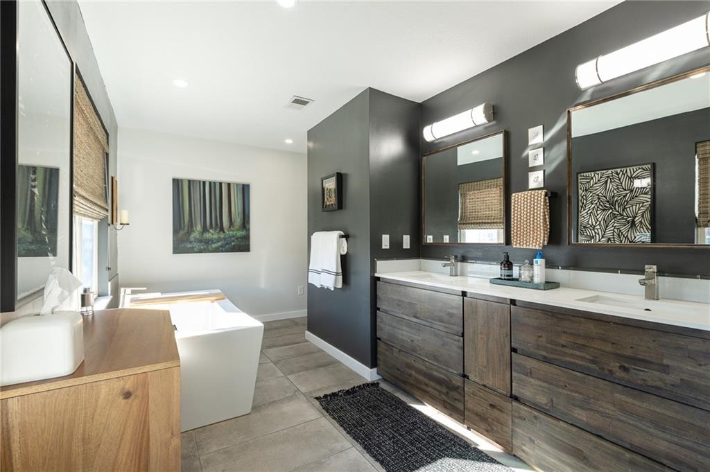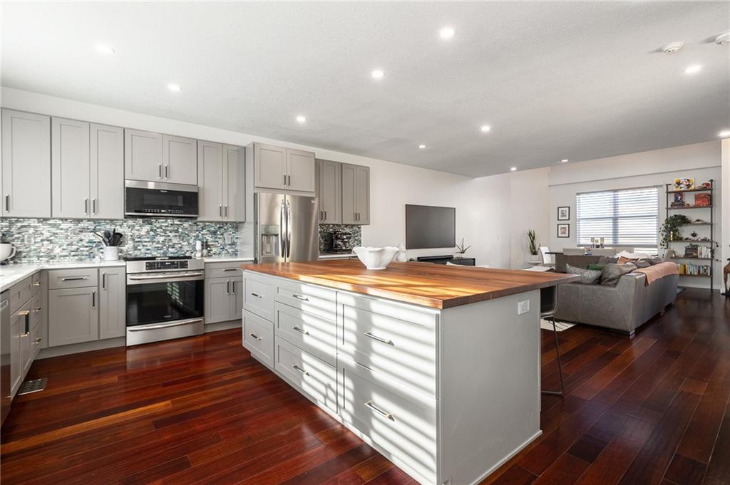 Beautifully updated 2 bedroom Contemporary Condo at the Madison. Located on the world famous Country Club Plaza, minutes to shops, restaurants, parks and so much more. Open floor plan with a stunning large teak island in the kitchen with pristine hard wood floors. Plenty of storage space in the kitchen and a dry bar, perfect for entertaining. Updated half bath and pantry off of the kitchen. Freshly painted throughout with a beautiful entry way chandelier. Vaulted ceilings with electric shades and ceiling fans in the kitchen and living room. Large loft bedroom with a walk in closet, washer and dryer is located in the hallway beside the primary bedroom. Beautiful bathroom with double vanities and lots of cabinet space. Bedroom on the lower level could also be a great office space with a full bathroom. This unit comes with a attached 2 car garage. Guest Parking available. This unit has been well maintained and is move in ready.