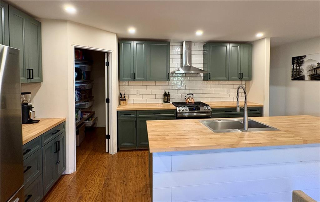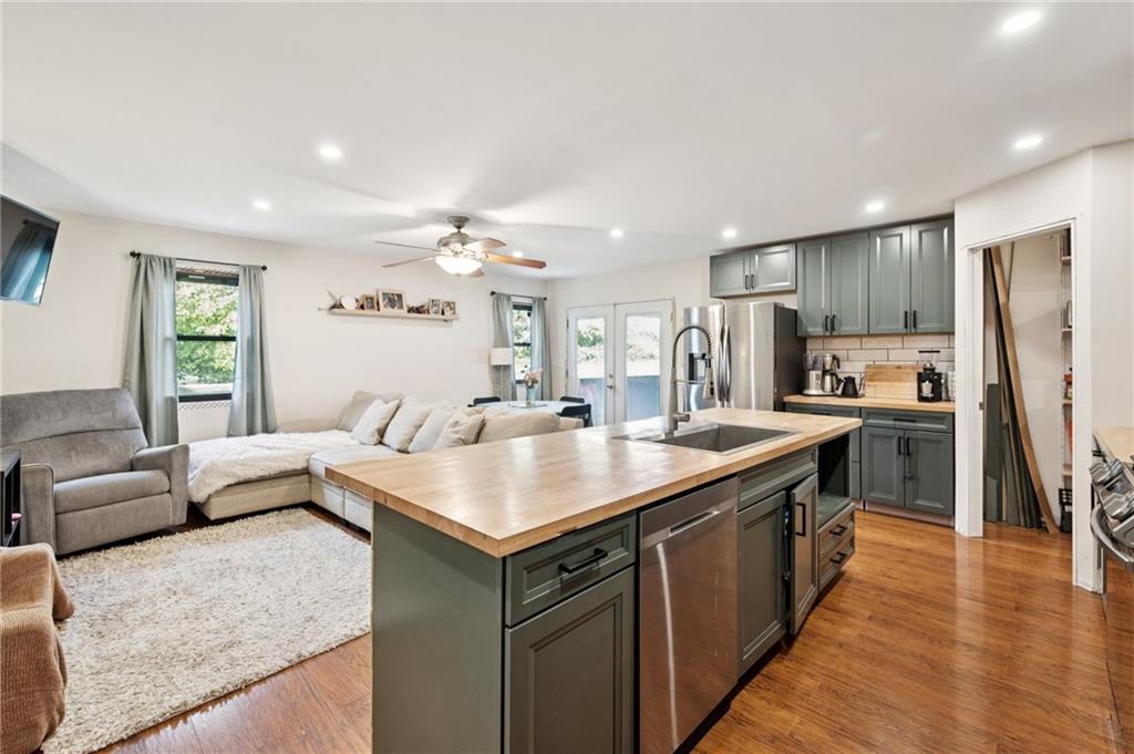 BEAUTIFULLY updated 3 bedroom, 2 bathroom home on acreage in town! Home has been smartly redesigned to incorporate laundry with office area on the main level. Open living area features a GORGEOUS new kitchen with large island, stainless steel appliances, gas stove and a walk-in pantry. The design style and workmanship are stellar! The primary bedroom features a new ensuite bathroom and walk-in closet with barn door. You will love the open concept living room that walks out to the large covered deck. A second office/flex room has been added to the basement, but still leaves plenty of unfinished space for storage. Basement walks out to the 2 car garage and out to the oversized driveway. Plus, there is additional parking available in front of the home. Oversized lot is approximately 2.35 acres and features a new, custom built fire pit area and new retaining wall. The back +/- one acre is wooded with a nice walking path where you can see deer and other wildlife. Home improvements include upgraded electrical panel, plumbing lines upgraded from copper to PEX, newer septic tank, added sump pump and insulation. There are some punchlist and exterior repairs left to finish up, but this home is move in ready. Sellers prefer to sell AS IS.