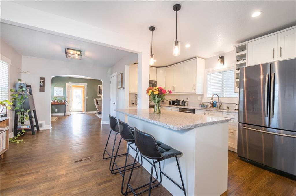 Timeless Charm Meets Modern Living in the Heart of Mission. Step into this beautifully updated 1935 home where vintage character meets contemporary comfort. Nestled in one of Mission’s most desirable neighborhoods, this 3-bedroom, 2-bath gem perfectly blends historic charm with today’s modern conveniences. The welcoming enclosed front porch sets the tone for the home’s inviting atmosphere. Inside, original hardwood floors flow through bright, open living spaces accented by a classic brick fireplace—the ideal spot to unwind on cool evenings. The updated kitchen impresses with granite countertops, stainless steel appliances, and a large island perfect for casual dining and entertaining. Each bedroom offers comfortable living space with abundant natural light, while both full bathrooms feature stylish, modern finishes. Fresh paint throughout complements the home’s thoughtful design, showcasing its unique blend of old-world craftsmanship and fresh, updated style. Step outside to enjoy a fenced backyard shaded by mature trees, complete with a patio ideal for grilling and gatherings. The single-car garage adds convenience, while the home’s location can’t be beat—just minutes from Johnson Drive’s shops and restaurants, beautiful parks, and the Country Club Plaza. With its combination of timeless architecture, modern updates, and unbeatable location, this Mission treasure is ready to welcome you home.