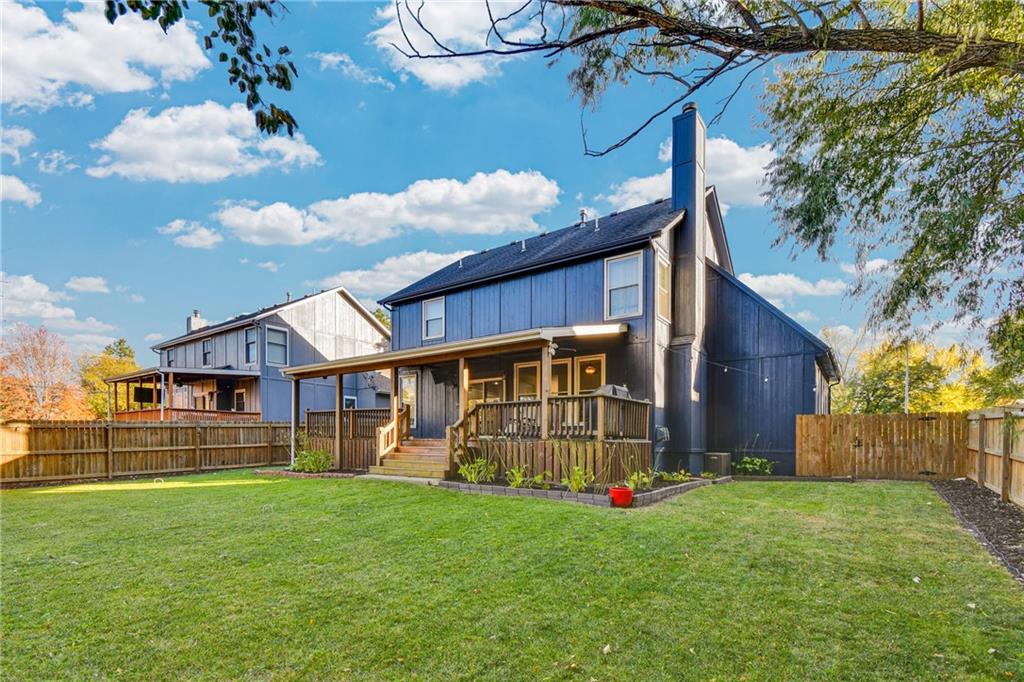 Beautifully Updated Home in Award-Winning Olathe Schools! Stunning curb appeal and timeless charm welcome you to this immaculate 2-story home, ideally located in the highly sought-after Olathe School District just behind Chisholm Trail Middle School and near Sunnyside Elementary, with quick access to Garmin HQ, highways, restaurants, and shops. Step inside to a freshly painted bright white interior that feels modern and inviting. The open floor plan features newer luxury vinyl plank flooring throughout the main level, seamlessly connecting the spacious living room, dining area, and kitchen. The kitchen offers ample and bright cabinets, plenty of counter space, and newer appliances perfect for everyday living and entertaining. The living room greats you with a cozy fireplace and large windows overlooking the covered back deck and beautifully maintained backyard, ideal for outdoor gatherings or quiet evenings. Upstairs, the light-filled primary suite includes double vanities, a walk-in shower, and a generous walk-in closet. The basement is complete with a full bathroom, adding versatile living space perfect for a family room, gym, or home office. With its prime location, stylish updates, and welcoming neighborhood, this home is truly move-in ready!