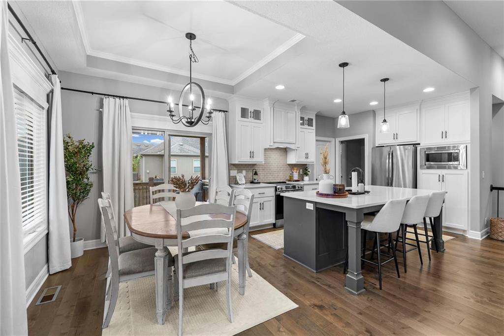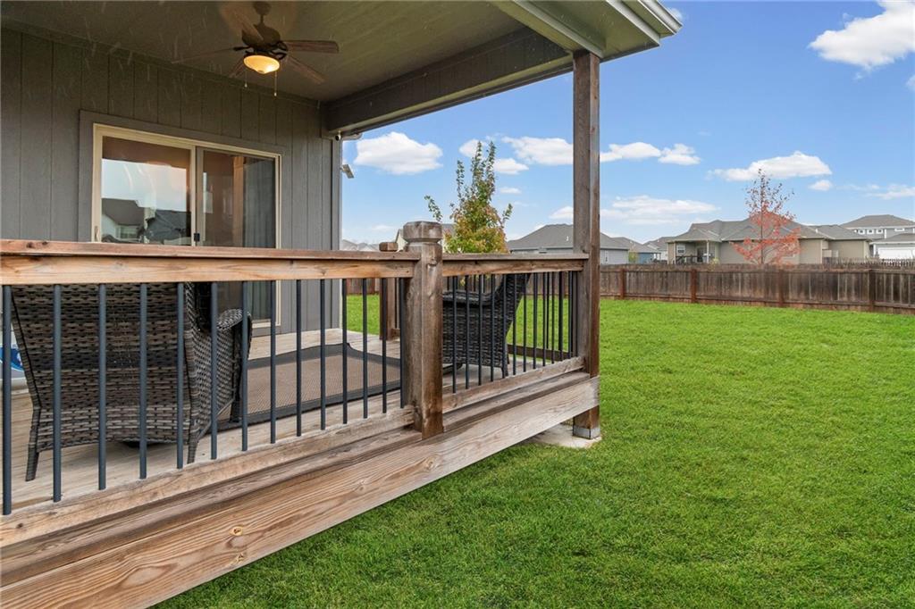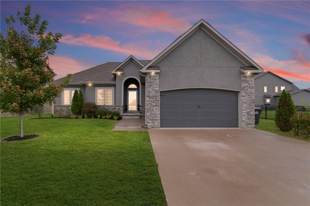 Meet Maggie, our adorable long-haired miniature dachshund and proud mascot — you’ll spot her in two of the listing photos, ready to give you a warm welcome home! This charming 5-bedroom, 3-bath ranch offers the perfect blend of comfort and style. The great room features soaring ceilings and a cozy gas fireplace, creating an inviting space to relax. The kitchen boasts beautiful wood cabinets, granite countertops, and an oversized island with a breakfast bar — ideal for entertaining. A separate dining area opens to a covered patio with a ceiling fan, perfect for outdoor enjoyment. The primary suite showcases a 10-foot tray ceiling, a spacious walk-in closet, and a luxurious bath with ample storage, a soaking tub, and a separate shower. Two additional bedrooms and a full bath are located off the great room. The finished basement adds even more living space, featuring a large rec room, two bedrooms, and a shared full bath. With laundry hookups on both the main level and in the garage, a two-car garage, a sprinkler system, and access to nearby parks, walking trails, and community amenities — this home has it all. Maggie says, “Welcome home — you’re going to love it here!”