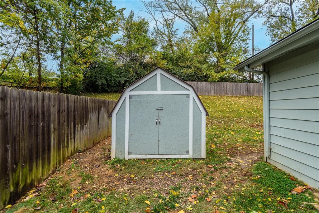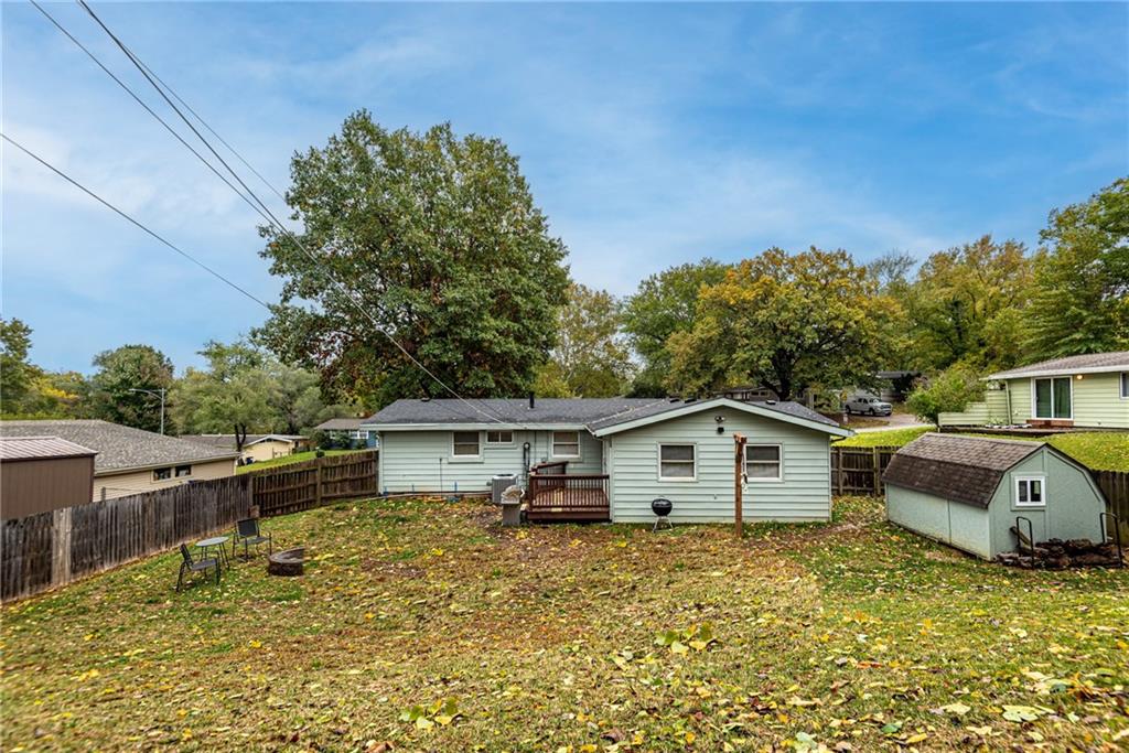 A double driveway welcomes you home to this super charming 3 bedroom, 1 bath in a prime location within top-rated North Kansas City School District. Enjoy vaulted ceilings, tons of natural light throughout, and gorgeous hardwoods paired with luxury vinyl tile. The kitchen features stainless steel appliances, ample cabinetry, and a separate pantry. You'll love having two separate living areas here. Each bedroom offers generous closet space with built-in storage, and extra closets in the hallway. A 3-year-old roof, new AC, furnace and ductwork-2023, 120 ft french drain-2024, new water lines in crawlspace-2023, landscaping-2025, fresh paint, and thoughtful upgrades throughout. Oversized one-car garage includes built-ins and plenty of space for a golf cart, ATV, etc. Step outside to a huge backyard that's fully fenced-in, new deck, large shed, and firepit. The perfect setup for cozy fall nights. Come see it!