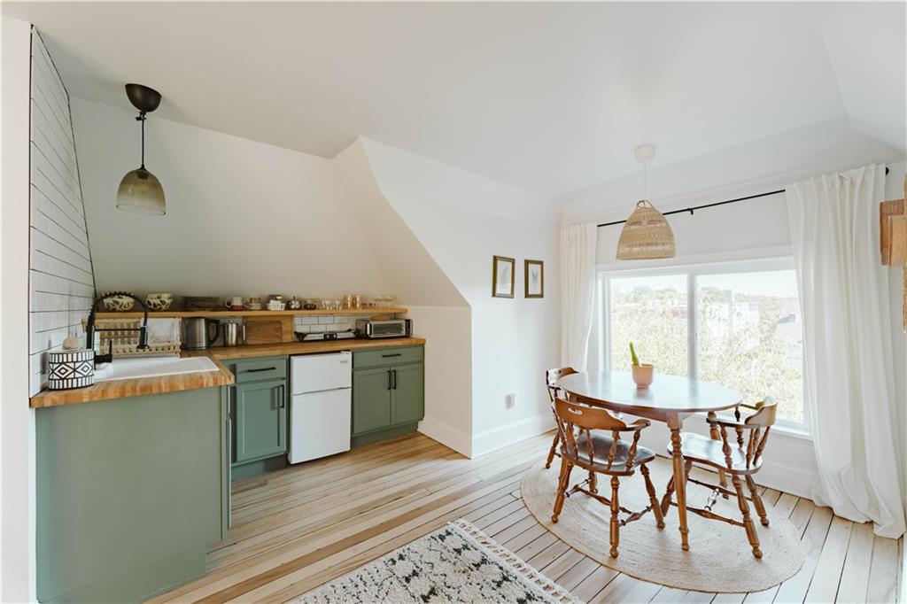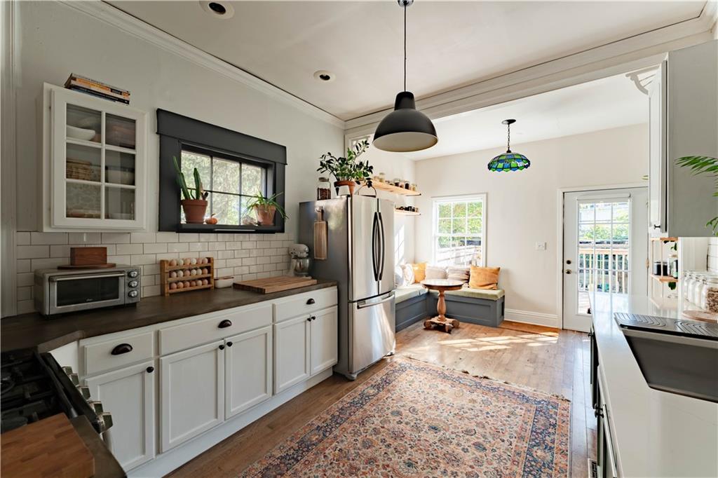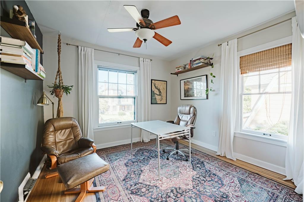 In the heart of Hyde Park, this home feels like a breath of calm amongst the hustle and bustle. Filled with sunlight, greenery, and a sense of warmth. The living room glows with natural light and walls lined with character. Tall ceilings, wood floors, and thoughtfully layered details create a space that feels both lived-in and inspired, the kind of home that quietly unfolds its charm one moment at a time. The main level’s open flow connects the inviting living area to the dining room and a kitchen featuring a quartz countertops, a large open style sink, and sleek Samsung stainless steel appliances. Every space feels designed for real life, whether that’s gathering friends for dinner, reading in the sun soaked window seat, or tending to the thriving collection of plants that flourish in the natural light. The second floor primary bedroom gives you all space you could ever need including a connected nursery or office. Once you walk through you see the amazing sun room over looking your urban oasis of a backyard. Upstairs, the fully furnished third-floor apartment offers incredible versatility. Currently a registered short-term rental, it’s ready to generate income or serve as a perfect guest retreat. Outside, this property shines even brighter. The backyard and gardens are a living extension of the home, complete with established fruit trees, numerous raised garden beds, and a native front yard that supports all your favorite pollinators. For those with a touch of homesteading spirit, the chicken and duck coop (and their feathered residents, if desired) are ready to stay. Just steps from the Hyde Park street car stop everything from Brookside to all of the River Market is at your fingertips. You are actual steps away from local restaurants. This home captures the best of Midtown living: creative energy, quiet comfort, and a connection to community that only deepens with time.