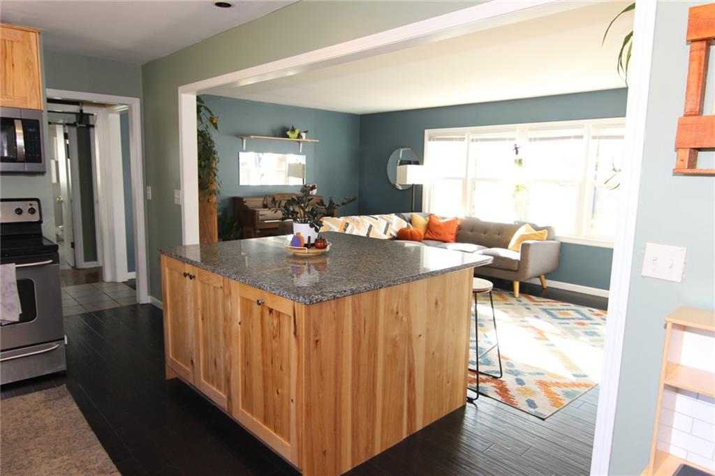 Welcome home to this wonderful oversized 2-bedroom, 1-bath ranch featuring a spacious 2-car garage and a thoughtfully updated, open-concept design. The completely remodeled kitchen now flows seamlessly into the great room, creating the perfect space for entertaining or relaxing. Enjoy the cozy dining area and a convenient office nook just off the kitchen — ideal for working from home or staying organized. This home offers easy, single-level living with the laundry room located right off the kitchen. The maintenance-free exterior, all-new windows, and oversized garage ensure both comfort and peace of mind. Step outside to a wonderful fenced-in backyard, perfect for pets, play, or summer gatherings. Situated in a fantastic location close to downtown Shawnee’s restaurants and shops, this home is also within walking distance to the local grade school — a rare find combining charm, convenience, and community.