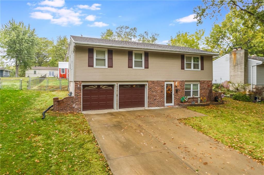Charming raised ranch in the established Gracemor neighborhood offering 3 bedrooms, 1.5 baths, and a partially finished lower level. This well-maintained home blends comfort and function in a convenient Kansas City north location. The newer kitchen features stainless steel appliances, tile flooring, and ample cabinet storage, opening to the dining area with sliding doors to a covered composite deck, ideal for year-round enjoyment. Hardwood floors flow throughout the main level, adding warmth and character. The full bath has been nicely updated, and all appliances, including the washer, dryer, and refrigerator stay with the home. The lower level offers additional living space perfect for a family room, home office, or hobby area, along with a convenient half bath in the garage. Enjoy outdoor living in the fenced backyard with a newer storage shed, expanded patio, and plenty of room for entertaining, pets, or gardening. A two-car garage provides excellent storage and parking. Conveniently located near Ford and major highways all within the North Kansas City School District.