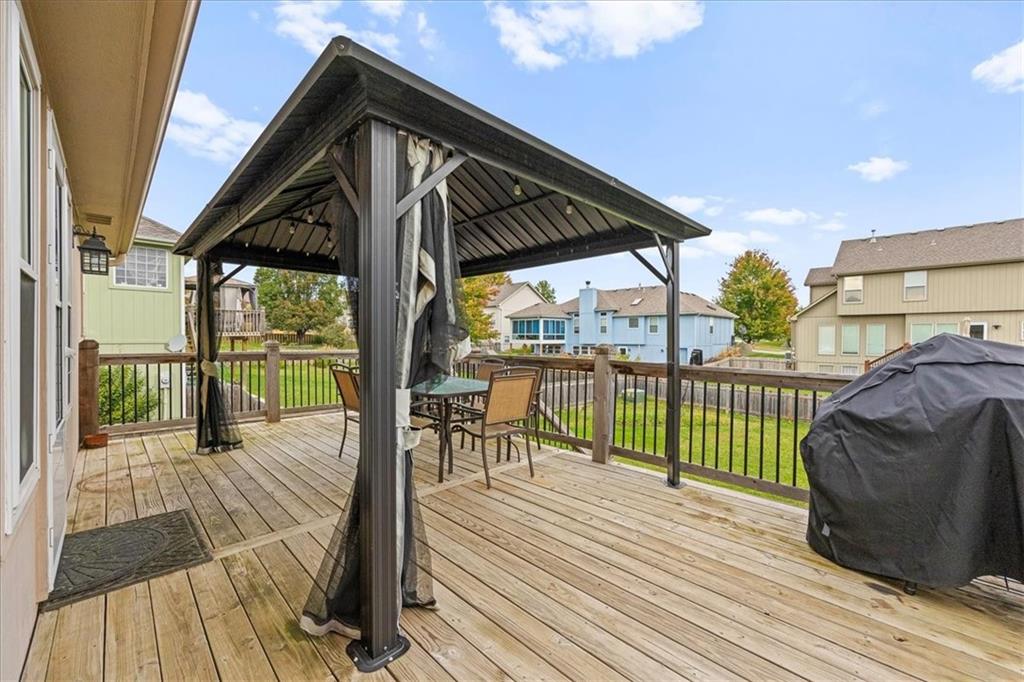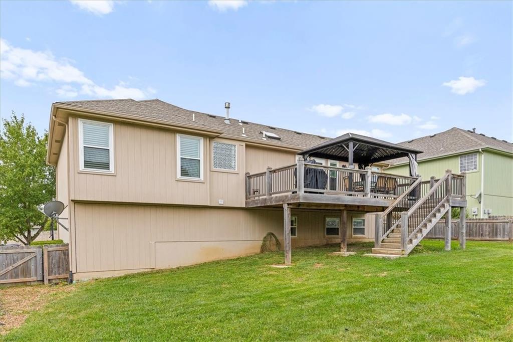 From its thoughtful upgrades and flexible living spaces, this home offers a rare combination of turnkey condition and room to grow. This home is part of a pool-equipped subdivision, with the neighborhood pool just around the corner. Prairie elementary school is right down the street(2 blocks). The main level features a vaulted ceiling anchored by a corner gas fireplace, creating a grand yet cozy gathering space. The kitchen is thoughtfully organized with generous cabinet storage, a pantry, and modern stainless-steel appliances. A 23'×12' deck with a 9'×12' gazebo offers an elevated space for relaxing or entertaining. The primary suite impresses with a walk-in closet, dual vanities, and a relaxing whirlpool tub. A finished basement expands your living area with a recreation room and convenient half-bath, while an unfinished sub-basement (approx. 300 sq ft) provides substantial storage space. Large 2 car garage.