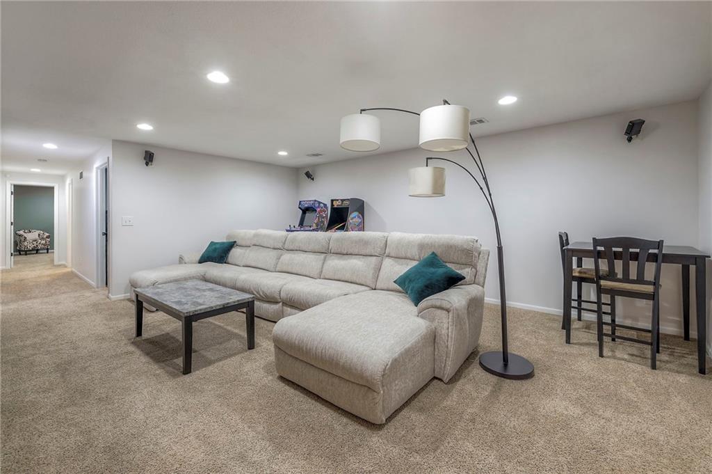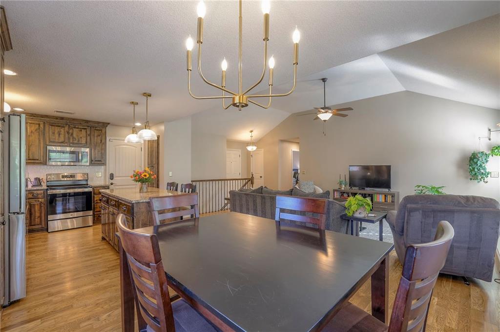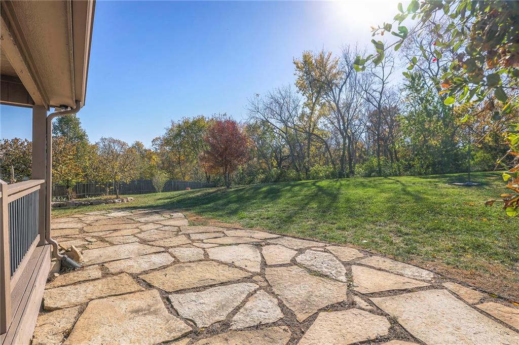Lovely ranch home perfectly situated on an oversized .54-acre corner lot in Shawnee! Step inside to discover beautifully refinished hardwood floors throughout the main level, fresh interior paint, and new light fixtures that make the home feel bright and updated. The open layout seamlessly connects the living room, kitchen, and dining area for effortless everyday living. The living room features a vaulted ceiling, plantation shutters, a cozy fireplace, and wonderful natural light, creating a warm and peaceful space to relax. The kitchen is equally impressive, featuring granite countertops, stainless steel appliances, a large island, and ample pantry space—perfect for both cooking and entertaining. Step outside to a covered deck overlooking your large, fenced backyard, which backs onto a private, treed area. Whether you’re hosting gatherings or enjoying your morning coffee, this outdoor setting offers beauty and tranquility. The primary suite features a vaulted ceiling, a walk-in closet, and an en-suite bath with a double vanity, shower, and a large soaking tub. Two additional main-level bedrooms include hardwood floors and generous closet space. The finished basement expands your living space with a spacious rec room ideal for movie nights, watch parties, or game days. A fourth bedroom with a huge walk-in closet and updated full bath, plus a bonus office or workout room, offers even more flexibility. There’s also abundant storage or workshop space for all your extras. Laundry hookups are available on both the main level and in the basement for added convenience. The three-car garage features tall ceilings and ample space, even accommodating a full-size truck. Fantastic location close to Shawnee Mission Parkway amenities, City Center’s new development at 87th Street, and zoned for the De Soto School District, including Mill Valley High School. Enjoy the tree-filled scenery that makes this part of Shawnee so special. Make this beautifully updated ranch home yours