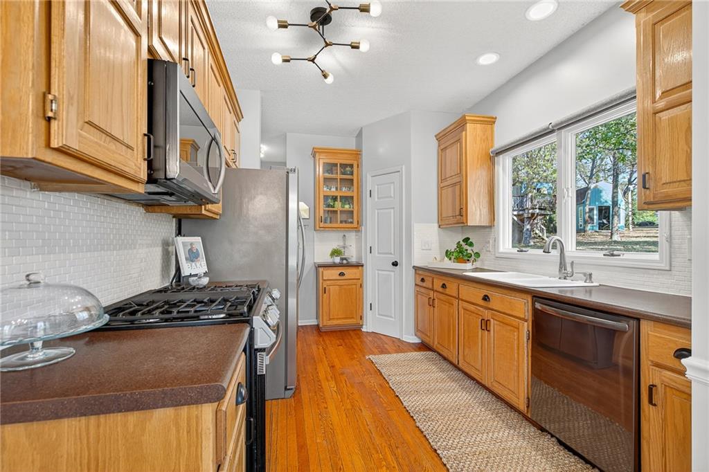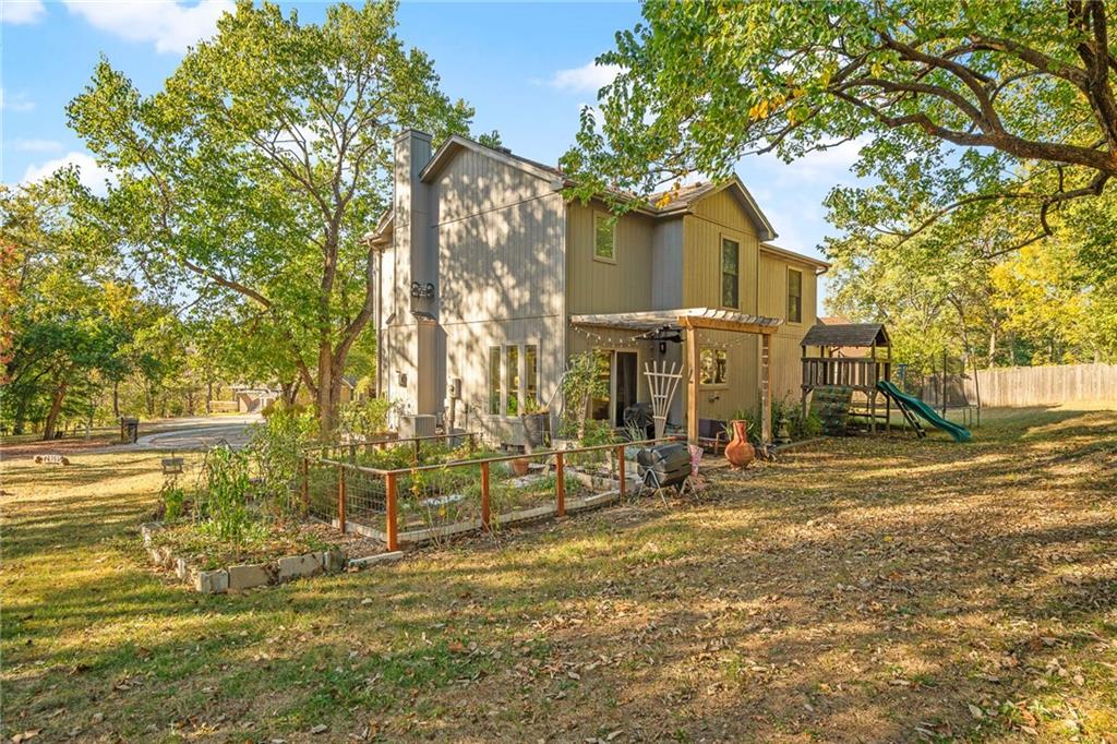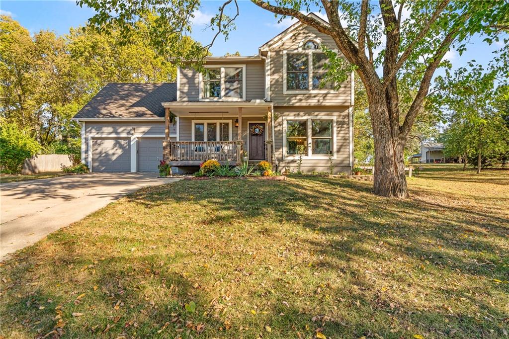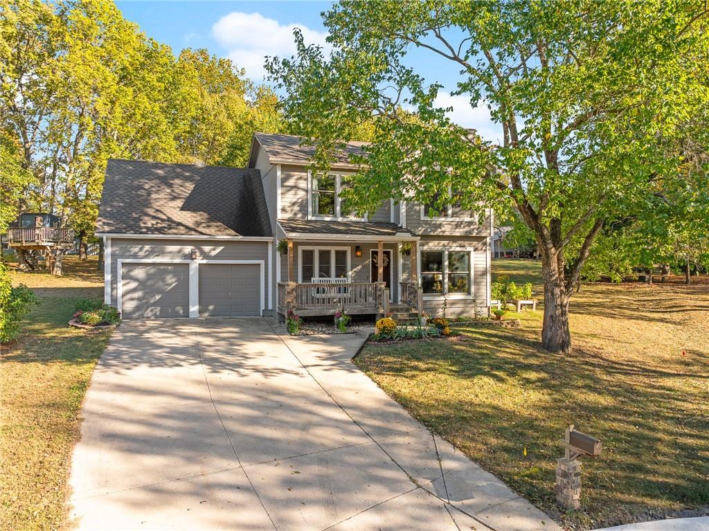 Welcome home to this beautifully maintained property tucked away on a quiet cul-de-sac in De Soto! Sitting on nearly half an acre surrounded by mature trees, this home offers a rare sense of peace and privacy that feels like country living—yet you’re just minutes from town. The inviting front porch sets the tone for the charm throughout. Inside, the home has been tastefully updated in collaboration with a professional interior designer, while the mechanical systems have been thoughtfully maintained. The open layout includes large bedrooms, a versatile loft that could easily serve as a 4th bedroom, and a finished basement complete with a full kitchenette—perfect for guests or extended family. Step outside to enjoy the park-like yard with a powered storage shed and a delightful treehouse that makes this property truly special. Great schools and offering convenient access to K-10, local amenities, and the Panasonic plant—this is the perfect blend of comfort, character, and convenience. All taxes and measurements are approximate.