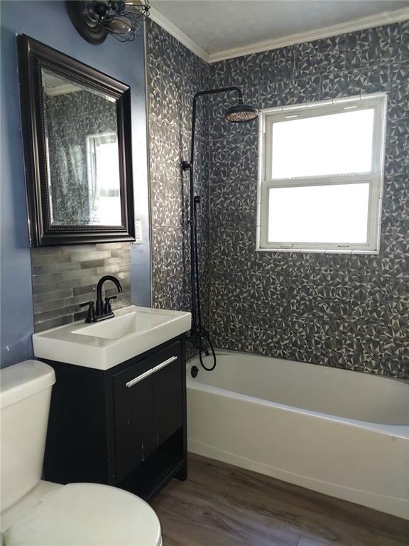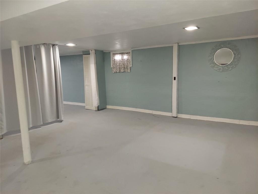 Lots of potential here...just cosmetics needed. Three bedroom/ 1 bath (second bath stubbed down) Beautiful refinished hardwood flooring throughout. Nice Dry basement with kitchenette, wonderful entertaining area with a little TLC. Bright sunny enclosed bonus room across the back of the house makes for extended living area. Newer HVAC too! Exterior is good with metal siding and large level fenced back yard. One car garage but double drive. Close to hiway and shopping!
