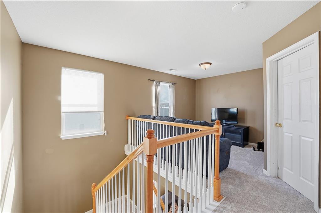 Don't miss out on this one! This is a great floorplan with 2 bedrooms and 2 baths on 2nd floor plus spacious loft for office or media area. Main level has large living room with gas fireplace, half bath and eat in kitchen that walks out to the outdoor patio and yard. Large unfinished daylight basement for storage or future finish. Updates include: brand new carpet throughout plus new vinyl plank in the kitchen plus furnace and A/C new in 2022 and hot water heater in 2024. Great location with easy highway access and near shopping and great dining. Liberty schools.