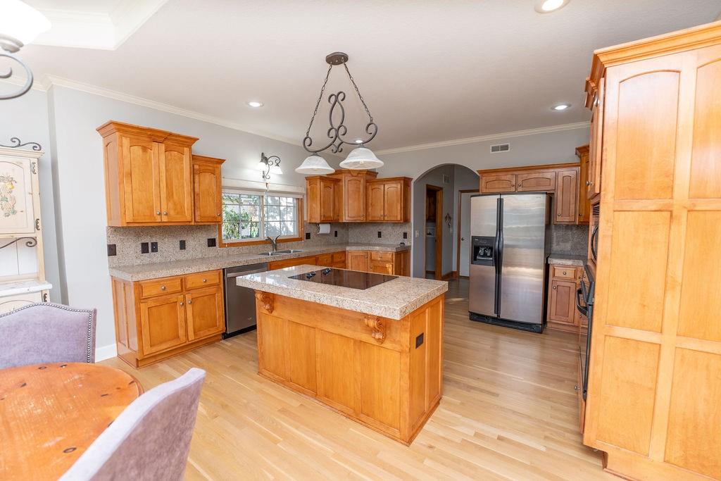 Spacious Ranch Retreat on a Quiet Street Welcome to this stunning large ranch-style home, perfectly situated on a peaceful street. Designed for comfort and style, this residence offers abundant natural light through floor-to-ceiling windows that showcase the beautiful surroundings. Step inside to find gleaming, recently refinished hardwood floors flowing throughout the open living spaces. The updated master bathroom provides a spa-like escape with modern finishes and thoughtful design. Enjoy the convenience of main-floor laundry, and rest easy knowing the home features a brand-new roof for years of worry-free living. With its bright, airy layout and inviting atmosphere, this home perfectly blends contemporary updates with classic charm — a rare find in today’s market.