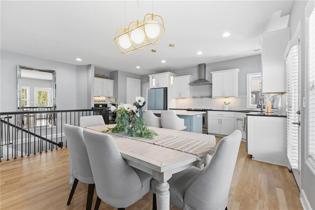 Welcome to this spacious 3,845 sq. ft. home situated on a .47-acre cul-de-sac corner lot in the highly sought-after Staley Farms Subdivision. This home combines elegance and functionality with soaring ceilings, updated lighting throughout, and refinished hardwood floors. The exterior received fresh paint in 2022, new landscaping in 2025, updated front door and the main-level full bath has been beautifully remodeled. (new roof will be installed prior to closing) Enjoy your evenings and weekends catching games on the TV on covered back deck. The main level offers 3 bedrooms, including a luxurious master suite with a large two-headed shower and a walk-in closet. The finished basement features high ceilings 2 additional bedrooms with a Jack-and-Jill bath, a full bath off the family room, and a wet bar with an island for entertaining. Equipped with a 4th-car garage perfect for storage or a golf cart. Extra features include abundant storage and a built-in safe room ideal for valuables or shelter. Add a hot tub to the back porch, the home is already wired for it. Enjoy all the neighborhood amenities Staley Farms has to offer: a zero-entry pool, lap pool, gym, basketball and tennis courts, volleyball court, and a children’s play area. Perfect for family living and entertaining, this home offers comfort, style, and endless possibilities.