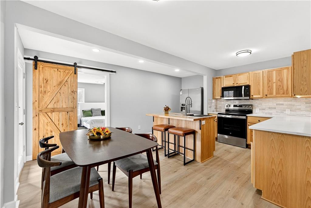FRESH, MODERN, and made for living well. This fully updated reverse ranch checks ALL the boxes—and then some. With 5 true bedrooms plus a 6th non-conforming bedroom, there’s room for everyone to spread out, settle in, and stay awhile. Step inside to an open-concept main level designed for connection, comfort, and unforgettable gatherings. The kitchen shines with brand-new custom cabinetry and a statement island—your hub for holiday baking, Sunday brunch, or midnight snacks. The dining and living flow seamlessly, creating a welcoming space framed by warm finishes and natural light. Step out to enjoy peaceful moments overlooking the backyard from the new elevated deck. Just off the kitchen, retreat to your private primary suite—tucked away from the rest of the home for total tranquility. Cozy up by your fireplace, and unwind in the new spa-style en suite with stylish tile surround. The main level continues with three additional spacious bedrooms and a beautifully updated full bath. Head downstairs to discover even more living space—a dedicated media area for movie nights, a large bedroom, a full bathroom and an additional expansive family room with abundant natural light that could be used as a bonus non-conforming bedroom perfect for guests or even enough space for a home studio, the possibilities are endless! This room also walks out to a covered patio with recessed lighting, offering your own secluded outdoor hangout for breezy evenings and backyard lounging. With thoughtful updates, a brand new roof, flexible living spaces, and plenty of room to live, work, and play, this home delivers modern comfort, peace of mind and effortless versatility for every lifestyle while offering privacy for the whole family! With remarkably quick access to highways in a convenient location next to the heart of Kansas City's sport action, you won't want to let this one get away! This home looks even better in person! Schedule a showing today!