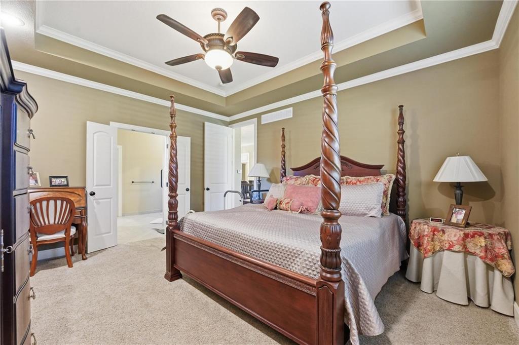 Prepare to be impressed from the moment you arrive! This beautifully maintained 4-bedroom, 3-bath Ashford Villas home offers a perfect blend of luxury, comfort, and functionality. The open-concept main level features a chef’s kitchen with a large granite island, spacious pantry, and high-end finishes, making it ideal for cooking and entertaining. Enjoy effortless flow from the kitchen to the inviting living and dining areas that open to a large patio and beautifully landscaped backyard perfect for relaxing or hosting gatherings. The primary suite on the main level is spacious and serene, offering a private retreat with a spa-like bath and generous walk-in closet. The finished lower level includes a stylish wet bar, two large bedrooms, bath, and plenty of storage space. Additional highlights include a three-car garage, gorgeous curb appeal, and a well-maintained neighborhood that enhances the sense of community. This home has been lovingly cared for and it shows in every detail. Please come experience the perfect combination of elegance and easy living in Ashford Villas! All HOA dues, taxes and room sizes are to be verified by the buyer and the buyers agent