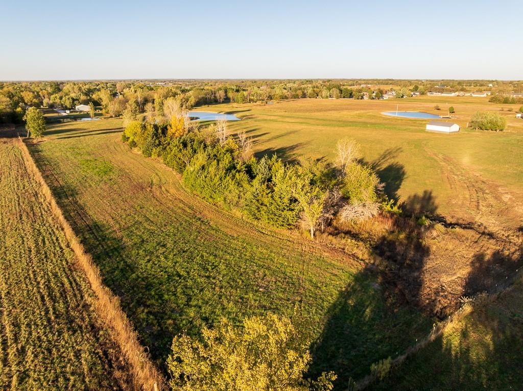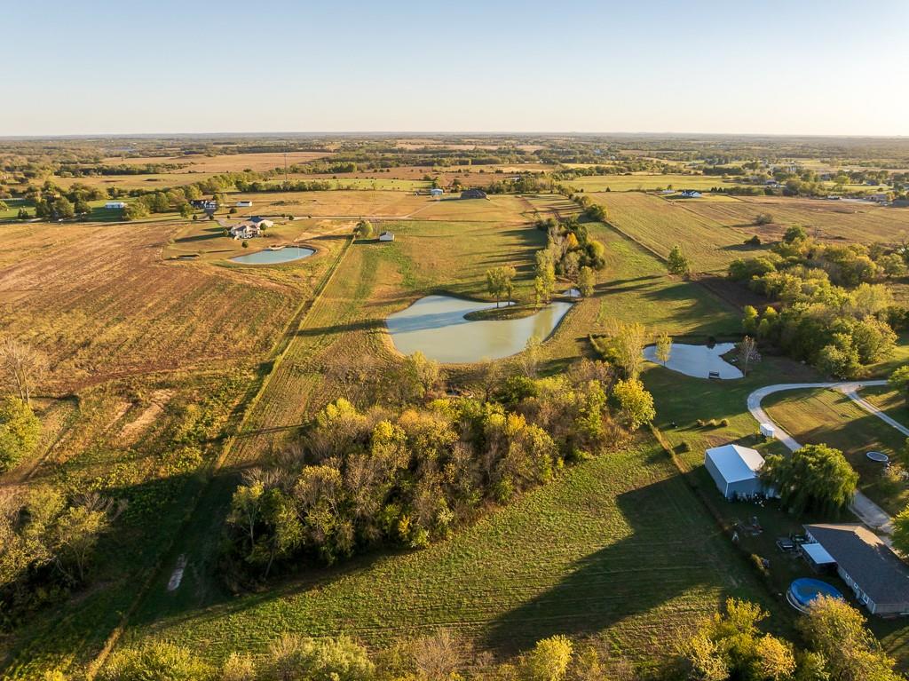 Located at the end of a blacktop dead end road on the south side of Garden City is this remarkable 21-acre tract. Mostly open, with good grass and perimeter fence, the ground is set up for pasture and/or hay, and with established water and a 30x40 shed, it would make an incredible hobby farm. The stunning 1-½-acre pond was cleaned out in 2024, and a long peninsula with mature shade trees extends into it, offering a gorgeous setting. Wooded areas include a long wooded draw and small woodlot north of the pond. Power and water utilities are available at the road, and a home could be positioned with spectacular views. The property was recently surveyed. It is just 35 minutes from Kansas City, and is located within the Sherwood School District.