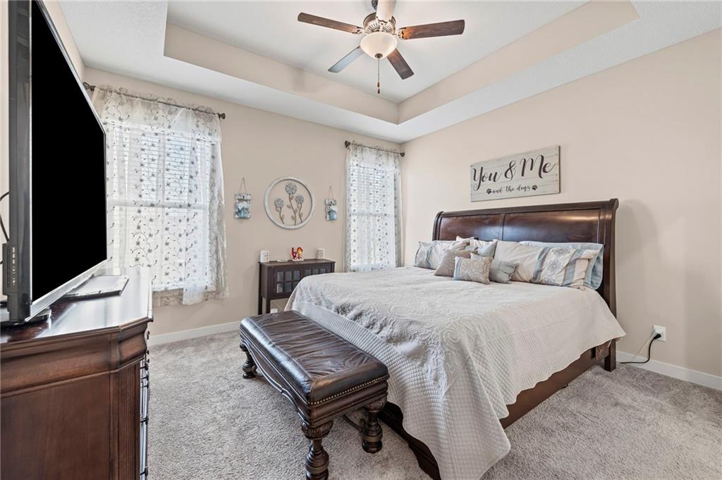Discover this show-stopping Reverse 1.5 story in the sought-after Woodside Ridge community. This beauty perfectly blends luxury, comfort, and style. The open kitchen, dining, and great room create a bright, welcoming space for everyday living and entertaining. The main floor includes two bedrooms, highlighted by a stunning primary suite with spa-like bath and walk-in closet. The main-level laundry room, located off the 3-car garage, provides maximum convenience for everyday living. The finished walk-out basement expands your living space with a large rec room, two bedrooms, and a full bath. Step outside to your deck or patio and enjoy peaceful views of the secluded backyard in one of the quietest neighborhoods that's still near all the action! Just a stone’s throw from the walking trail and minutes from shopping, dining, and schools, this home also offers incredible community amenities, including a resort-style pool, pickleball court, clubhouse, and hammock lounge.