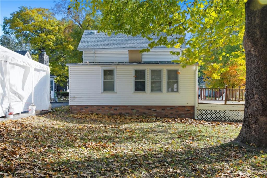 Located on a quiet street and situated on an extra large city lot this home won't last long. Step inside and take note of the wood floors and beautiful wood plank ceilings that are part of the character in this home owned by the same family for many generations. The main floor provides a dining and living room both offering high ceilings and nice size spaces in addition to an extra large full bath with nice walk in shower and beautiful vanity. Concluding the main floor living is a bedroom and the kitchen large enough for a table or island and comes with nice black appliances and pantry. The upstairs offers two more bedrooms and a half bath. Railings that line the stairwell can be easily removed allowing enough space for large furniture. A full unfinished walk out basement allows easy access from both outside and within the home for ample storage and work space. With a new roof and windows along with vinyl siding the exterior is coming ready to go and maintenance free. A large deck and covered front porch gives ample room for entertaining in the spring and summer as well as decorating for the upcoming holidays. An extra long and wide drive allows plenty of parking space and a small storage shed gives enough room for all you lawn tools and mowers. Close to amenities and major highways yet a small hometown feel.