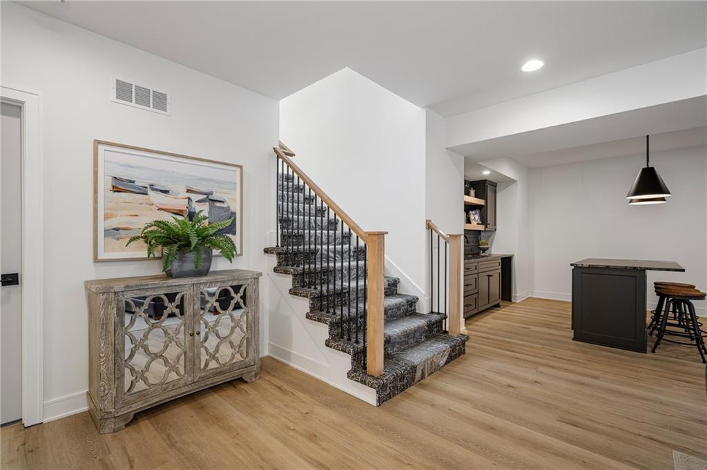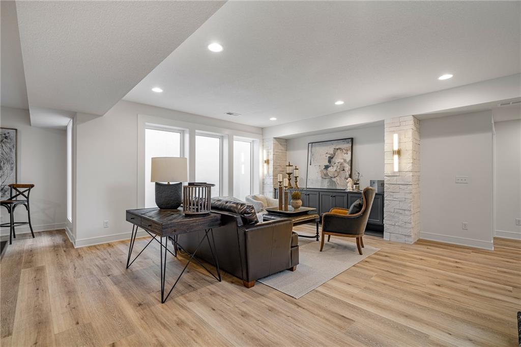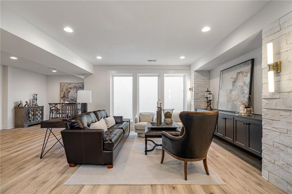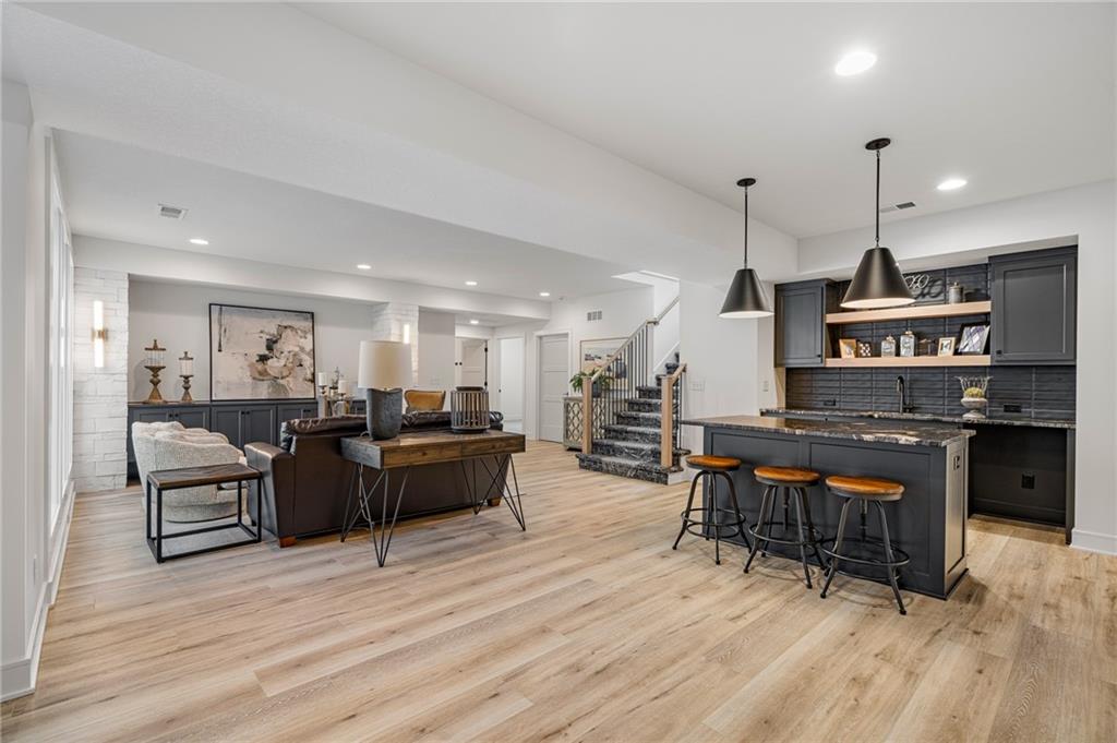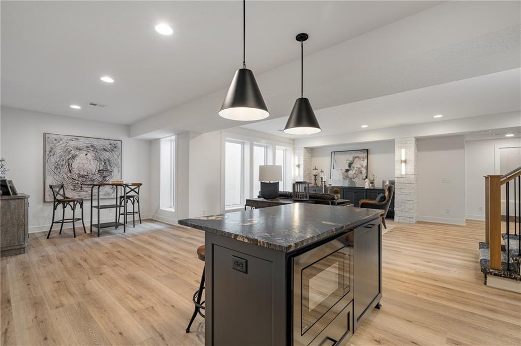 JFE Construction presents its stunning Gunnison Transitional Rev. 1.5-story plan in the highly desirable Prairie Canyon community. A dramatic, all-window A-frame entry welcomes you into the open-concept living, kitchen, and dining area. Light, wide-plank flooring, custom built-ins with floating shelves surrounding the stone fireplace, and designer lighting create a warm and sophisticated transitional style throughout the home. The beautifully appointed kitchen features a large island with a gooseneck faucet, stainless steel appliances, custom painted cabinetry, and a butler’s pantry with coffee bar. The adjacent dining area provides the perfect setting for everyday meals or entertaining guests. Extend your gatherings outdoors on the covered patio, complete with a cozy gas fireplace. The spacious primary suite offers a relaxing retreat, featuring elegant tile flooring in the ensuite bath, a soaking tub, walk-in shower, and double-bowl vanity. The expansive walk-in closet includes convenient third-tier storage for off-season items. The main level also includes a second bedroom or office, along with a generously sized mudroom and laundry room conveniently located off the garage. The staircase to the lower level is enhanced with designer stair carpet beautiful sconces. Downstairs, you’ll find a large recreation area ideal for relaxing or entertaining, featuring durable LVP flooring and a full bar with microwave. Two additional bedrooms and a full bathroom complete the lower level. This home also offers abundant storage throughout. Prairie Canyon offers maintenance-provided living with lawn care and snow removal included, and fencing is permitted within the community. Experience the beauty and comfort of this exceptional home—Prairie Canyon truly has so much to offer.