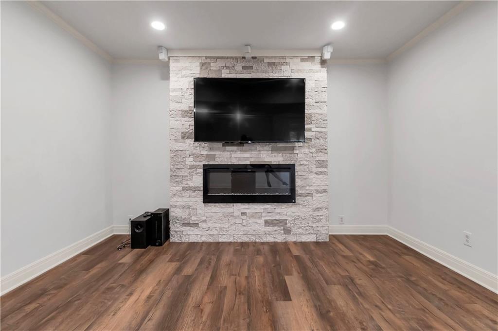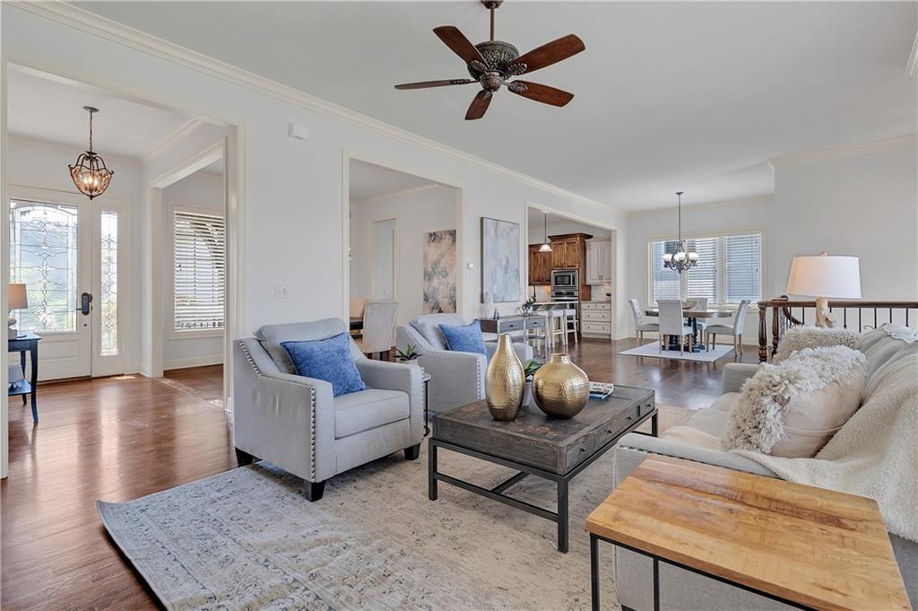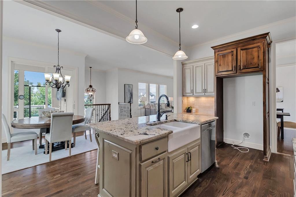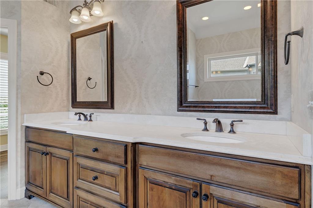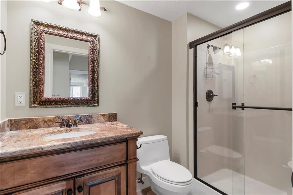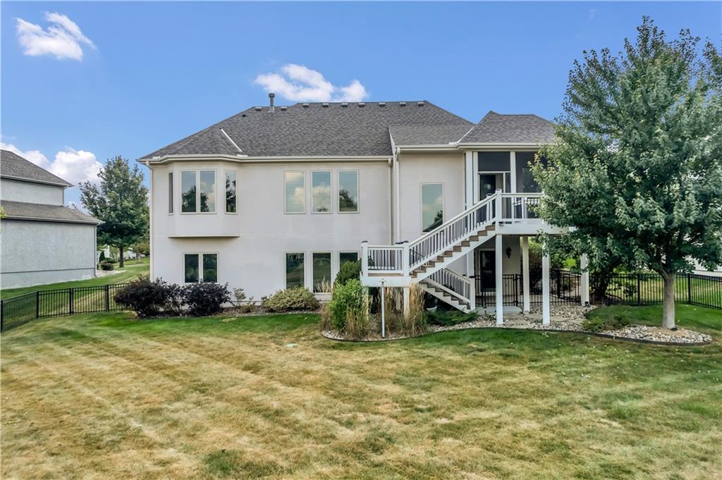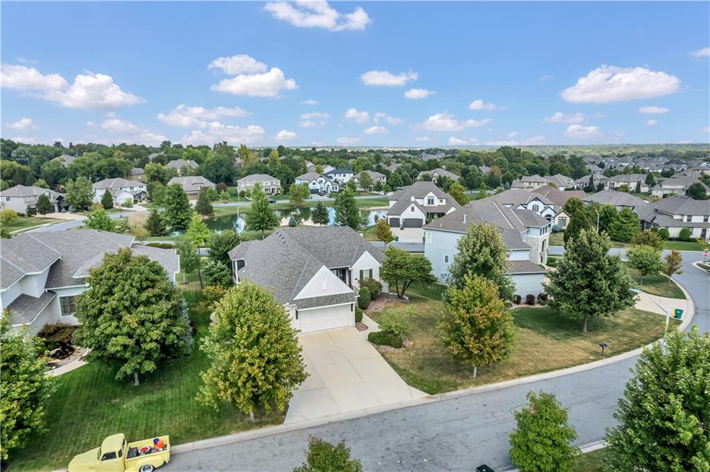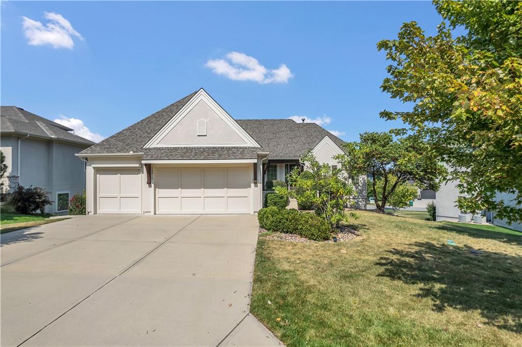 Great value in desirable WatersEdge! This 4 bedroom, 3 bath well maintained home showcases exceptional quality, hardwood floors throughout the main level, and peaceful water views from the deck, great room, and primary suite. The four-sided stucco exterior with stone trim is enhanced by a new roof with oversized gutters and downspouts (2023) and new exterior paint (2024). Outdoor living is easy on the screened deck with composite decking and stairs, or on the covered patio off the walkout lower level. The landscaped yard features mature trees and shrubs, a fenced backyard, and an inground sprinkler system for easy maintenance. Inside, the kitchen island boasts granite countertops, a gas cooktop, new microwave and dishwasher (2023), and a warming drawer. The main-level primary suite offers hardwood flooring and walk-in closet, while fresh interior paint and new bedroom and stair carpet (2025) add a clean, updated feel. The finished lower level is perfect for entertaining or guests, featuring two bedrooms, a large rec room, quartz countertop mini-kitchen with dishwasher and refrigerator space, a family room with electric stone fireplace, and durable LVP flooring. Additional highlights include a heated and air-conditioned 3-car garage with LED lighting, power screen on the single bay, and utility sink; a security system with Ring entry camera; and a convenient laundry room with sink and cabinetry. Nestled on a quiet cul-de-sac lot with a south-facing driveway, this home offers comfort, quality, and the perfect opportunity to make it your own.