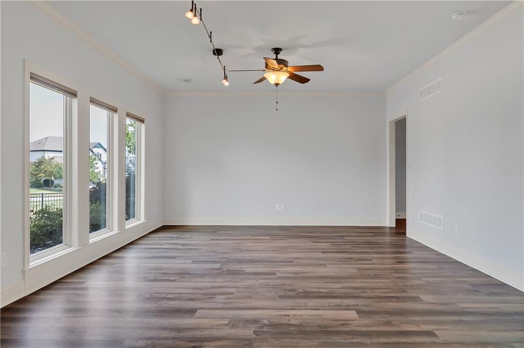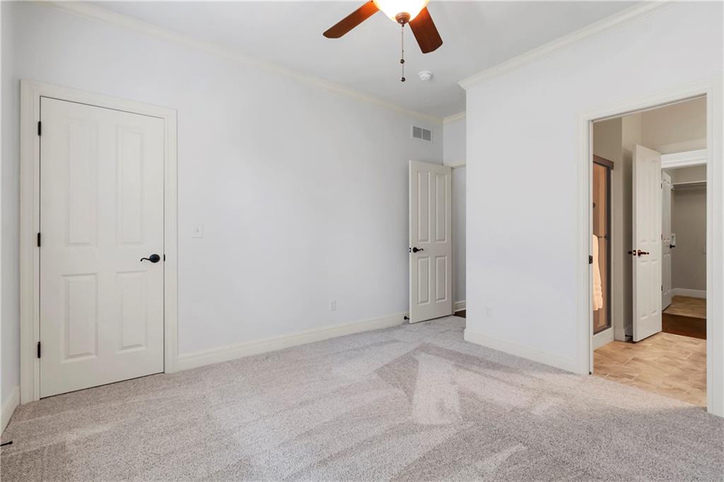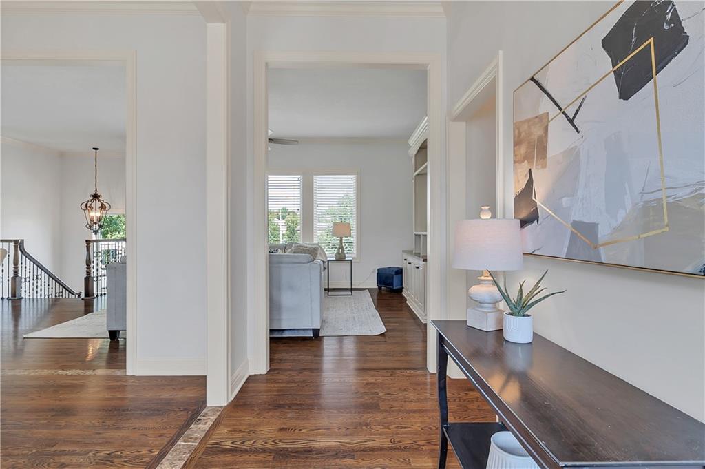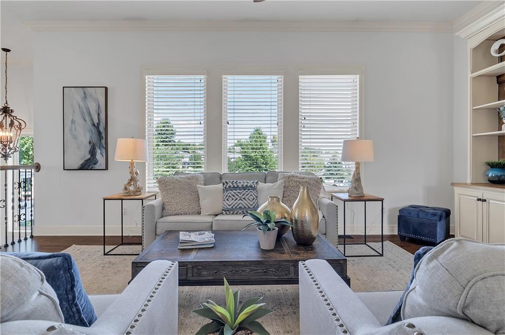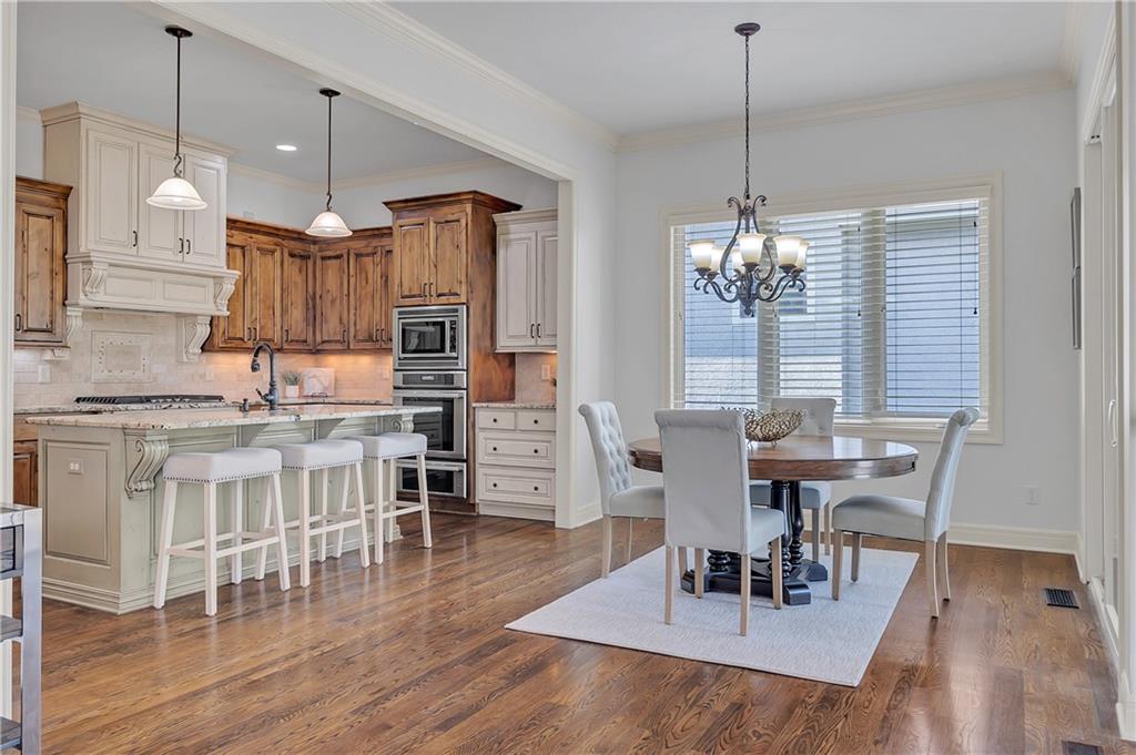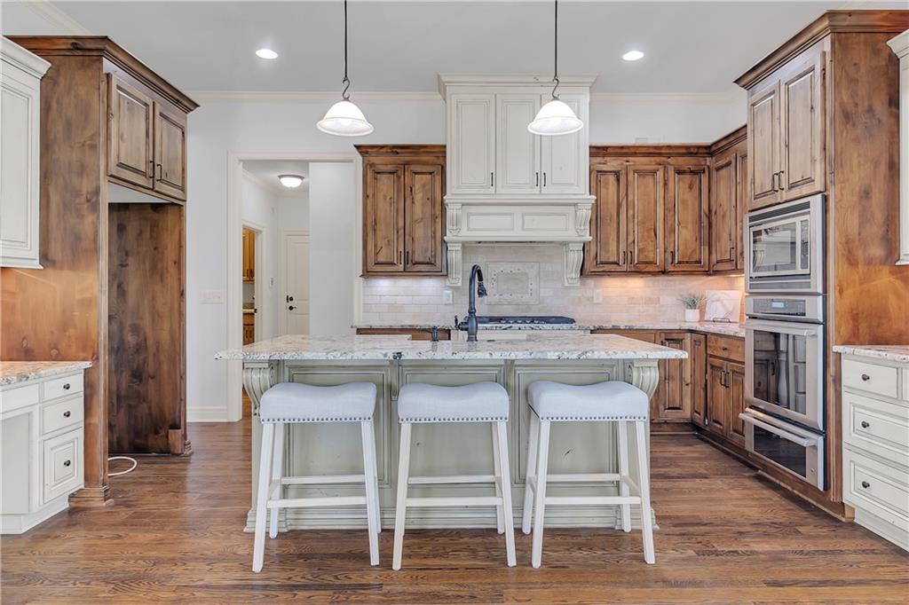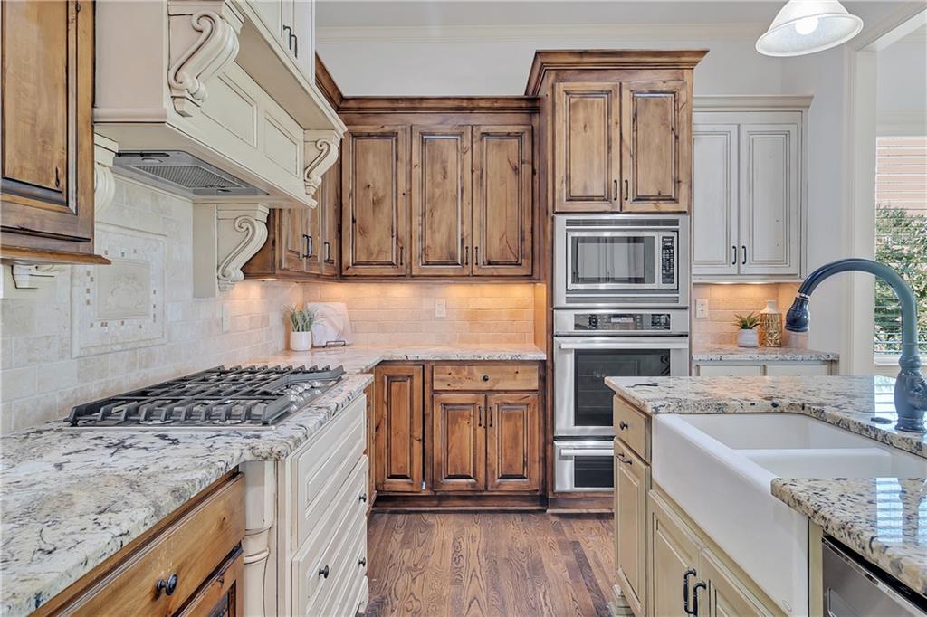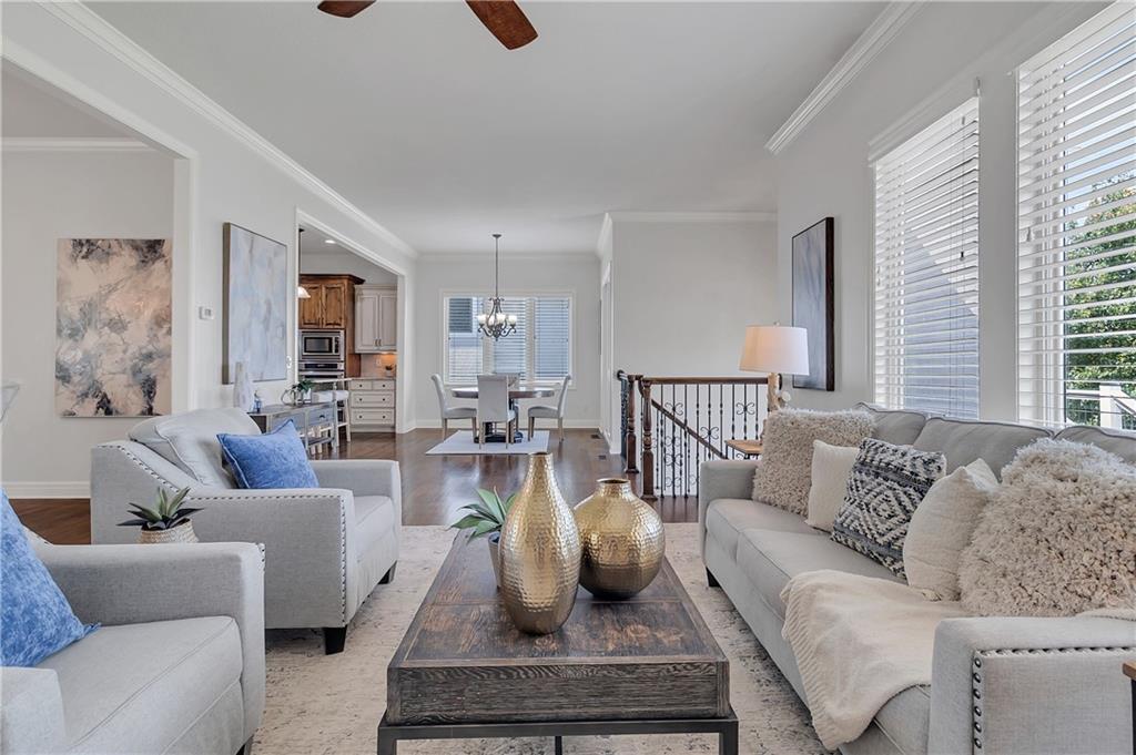 Great value in desirable WatersEdge! This 4 bedroom, 3 bath well maintained home showcases exceptional quality, hardwood floors throughout the main level, and peaceful water views from the deck, great room, and primary suite. The four-sided stucco exterior with stone trim is enhanced by a new roof with oversized gutters and downspouts (2023) and new exterior paint (2024). Outdoor living is easy on the screened deck with composite decking and stairs, or on the covered patio off the walkout lower level. The landscaped yard features mature trees and shrubs, a fenced backyard, and an inground sprinkler system for easy maintenance. Inside, the kitchen island boasts granite countertops, a gas cooktop, new microwave and dishwasher (2023), and a warming drawer. The main-level primary suite offers hardwood flooring and walk-in closet, while fresh interior paint and new bedroom and stair carpet (2025) add a clean, updated feel. The finished lower level is perfect for entertaining or guests, featuring two bedrooms, a large rec room, quartz countertop mini-kitchen with dishwasher and refrigerator space, a family room with electric stone fireplace, and durable LVP flooring. Additional highlights include a heated and air-conditioned 3-car garage with LED lighting, power screen on the single bay, and utility sink; a security system with Ring entry camera; and a convenient laundry room with sink and cabinetry. Nestled on a quiet cul-de-sac lot with a south-facing driveway, this home offers comfort, quality, and the perfect opportunity to make it your own.