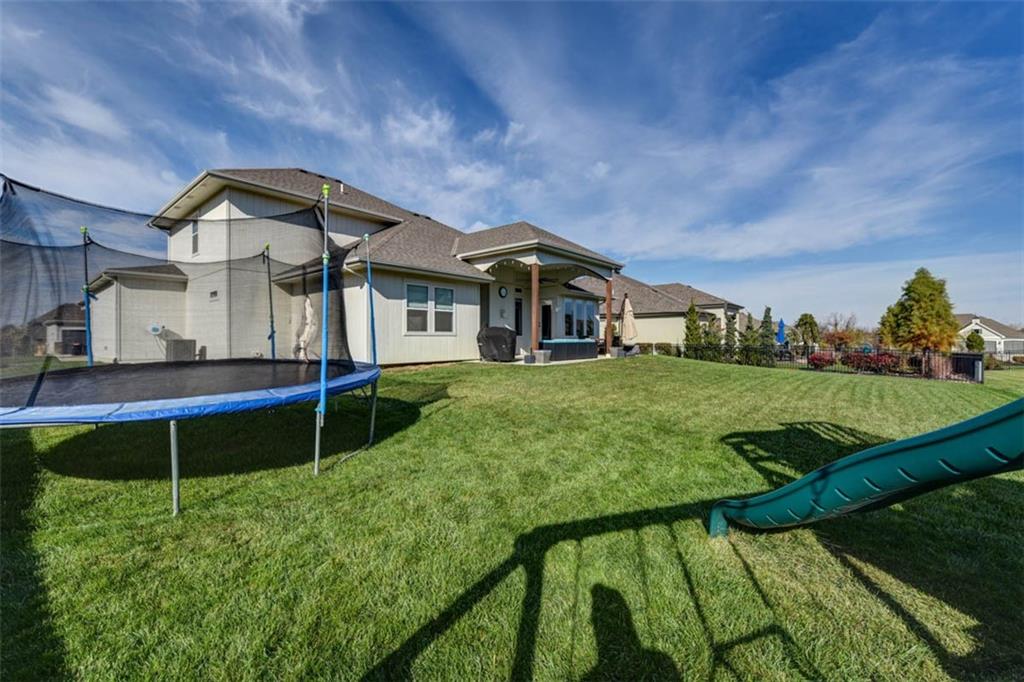 Impeccably designed and beautifully maintained, this exquisite 1.5-story home in Lee’s Summit captures modern elegance and refined comfort at every turn. From its sophisticated exterior and manicured landscaping to the thoughtfully curated interior, every detail reflects quality craftsmanship and timeless design. Step inside to soaring ceilings, rich hardwood floors, and sunlit spaces that immediately set a tone of understated luxury. The living room stuns with a striking fireplace and walls of windows that bathe the room in natural light. The open-concept layout flows effortlessly into the kitchen that makes an unforgettable first impression with rich dark cabinetry, sleek countertops, and an eye-catching hex-tile backsplash that anchors the space in style. A large center island invites conversation, while the incredible walk-in pantry and separate prep area elevate everyday living with seamless function. The main-floor primary suite offers a serene retreat, with an airy layout, spa-inspired ensuite featuring dual vanities, a freestanding soaking tub, and a spacious walk-in closet designed for both function and style. Upstairs, each secondary bedroom showcases high-end finishes, generous proportions, and access to beautifully appointed bathrooms. The finished lower level is equally impressive, designed for gathering and unwinding. A full wet bar with and wine room make it perfect for hosting, while a spacious living area and flexible 5th bedroom option offer endless possibilities. Outdoors, enjoy an extended living space on the covered patio overlooking a beautifully fenced yard. Every inch of this home feels intentional, blending craftsmanship and livable luxury in a way that stands out. This home offers the rare combination of modern sophistication and everyday warmth, a true standout in one of Lee’s Summit’s most sought-after communities!