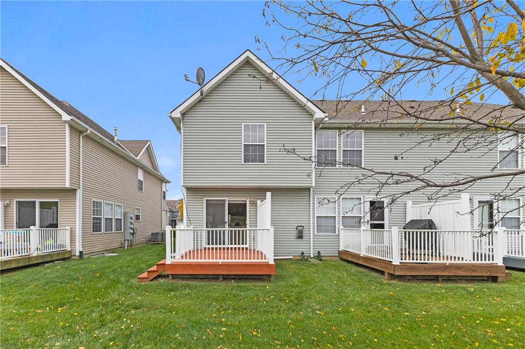 Maintenance-free living in highly desirable Benson Place! This beautifully maintained 3 bed, 2 full + 2 half bath townhome with FINISHED basement offers a bright and open main level with many windows, updated LVP flooring, a cozy living area with fireplace, and a kitchen/eat-in dining space that flows seamlessly for easy entertaining. Enjoy plantation shutters, updated window coverings, and an upgraded shade on the sliding door that opens to a peaceful, expansive backyard view filled with greenery and nature! Upstairs features a spacious primary suite with a huge walk-in closet and double vanity bath. Two additional bedrooms share a convenient Jack-and-Jill bathroom with updated flooring. The finished lower level is the perfect bonus space—complete with a wet bar/mini-fridge, large finished closet, storage under stairs, and an added half bath for convenience. ALL APPLIANCES STAY INCLUDING REFRIGERATOR AND W/D! Enjoy worry-free homeownership with maintenance-free living that includes NO yardwork or heavy snow removal AND all exterior maintenance is covered by the HOA. Take advantage of fantastic community amenities with access to 2 community pools, trails, splash park, and play area. Located within Liberty Public Schools and just minutes from local restaurants, shopping, and quick access to I-35 and I-435 highways. Move in ready!