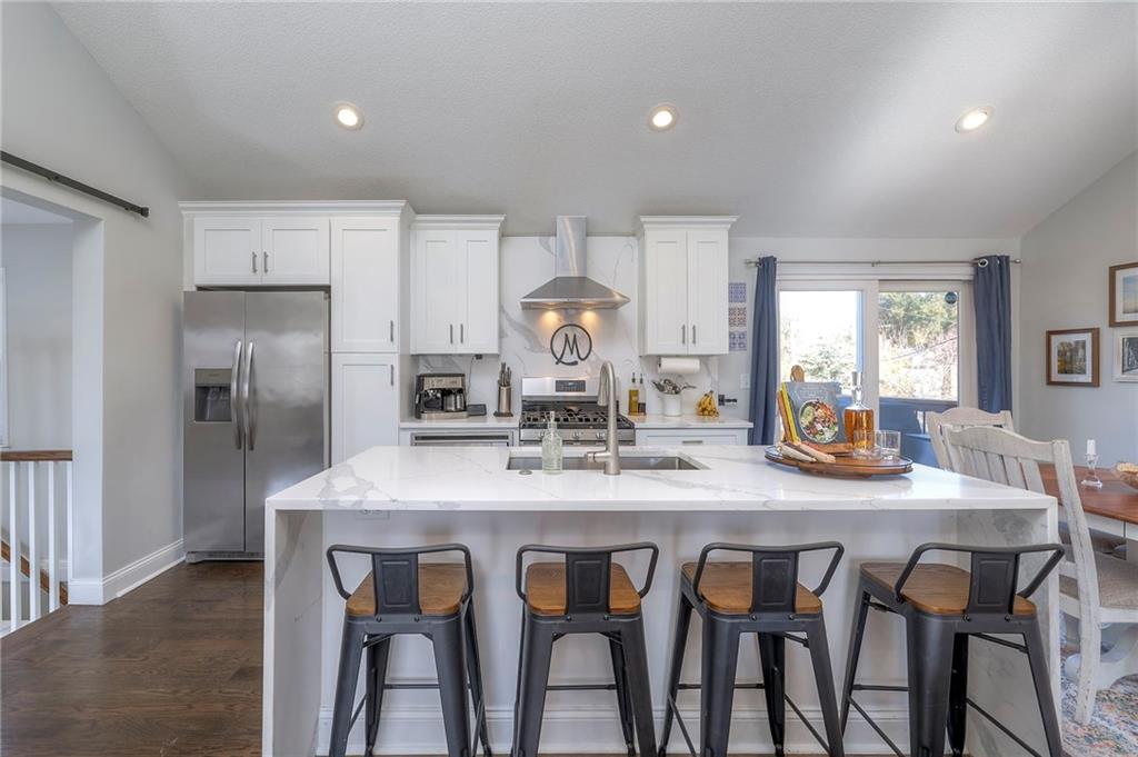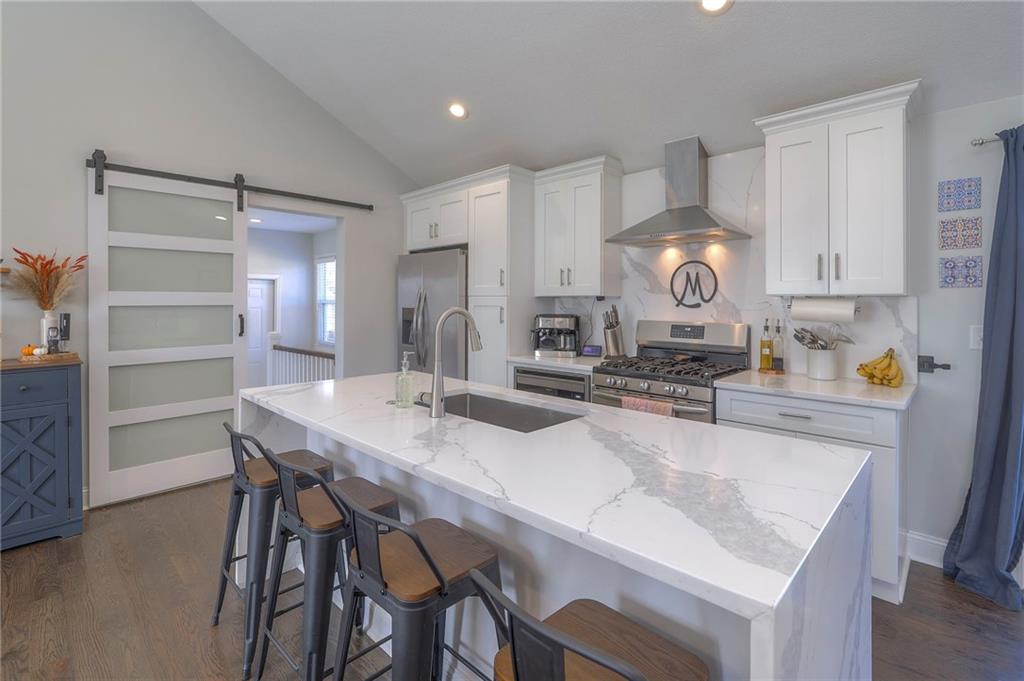 Picture Perfect in Roeland Park! Check out this stunning fully renovated 3 bedroom ranch with an open floor plan and a fabulous walk-out finished basement. Main floor boasts: gleaming hardwood floors, a vaulted ceiling, stack stone fireplace and an amazing kitchen with custom cabinets, large waterfall island, quartz countertops and stainless steel appliances. Down the hall you’ll find an updated full bathroom, laundry room, 2nd bedroom and a true primary bedroom suite. The finished lower level features a 2nd stack stone fireplace, custom wet bar, 3rd bedroom and a full bathroom. And don’t forget about the oversized yard, large stained deck with storage shed below, cozy patio/fire-pit area, 6-ft wood privacy fence and newly epoxied 2-car garage! Superb location close to popular shops, restaurants, highways and award winning Shawnee Mission schools. Stylish, bright and move-in ready…this is the one. Check it out today!