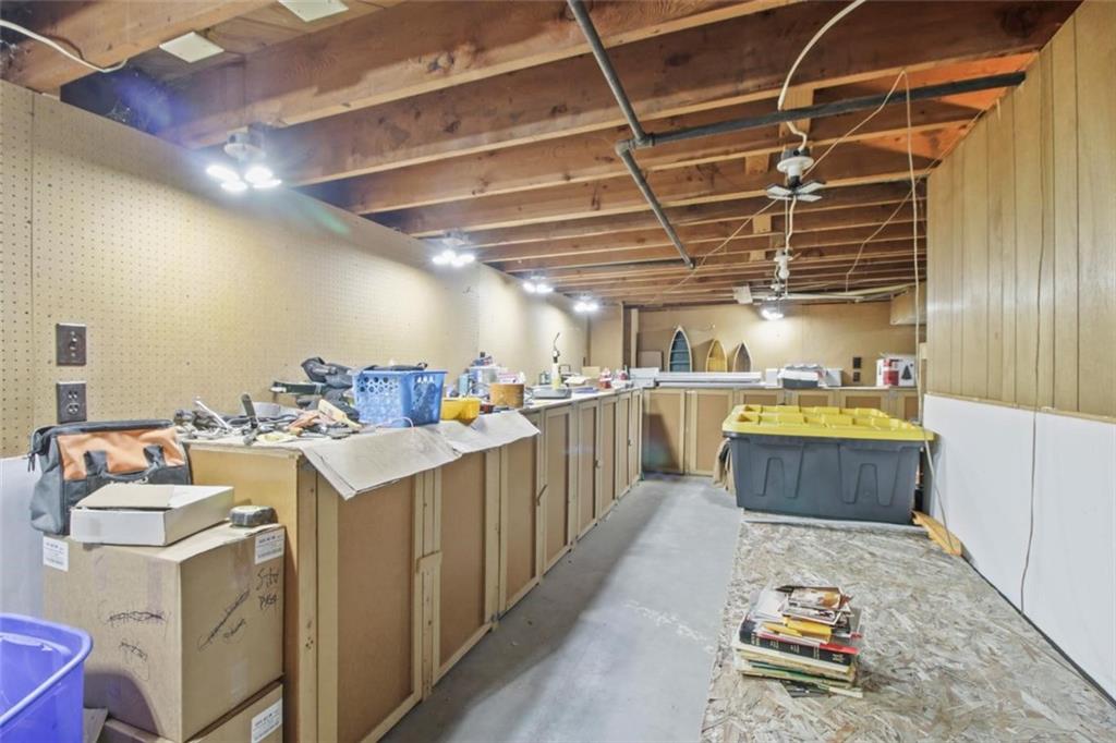Timeless Charm Meets Everyday Convenience! Step into this spacious 1950s ranch that perfectly blends vintage character with modern updates. You’ll love the easy main-level living — complete with laundry on the main floor! Original details like hardwood floors, a classic bathroom, and built-in cabinetry add a touch of mid-century charm, while thoughtful updates bring comfort and practicality to today’s lifestyle. The kitchen features a newer dishwasher, gas cooktop, updated lighting and ceiling fans, and even a four-door pantry for extra storage. An inviting bonus room off the kitchen offers flexible space — perfect for a family room, home office, or large dining area for entertaining. Downstairs, hobbyists and DIY lovers will appreciate the workshop area with over 20 feet of built-in cabinets, counters, shelving, and LED lighting. The basement also includes a second full bath ready to be updated and finished and an additional finished room ideal for storage or an office. Outside, enjoy the large fenced yard, complete with a storage shed and new garage doors and openers. Conveniently located just minutes from major highways and Raytown Schools, this home offers classic style, ample space, and endless possibilities to make it your own.