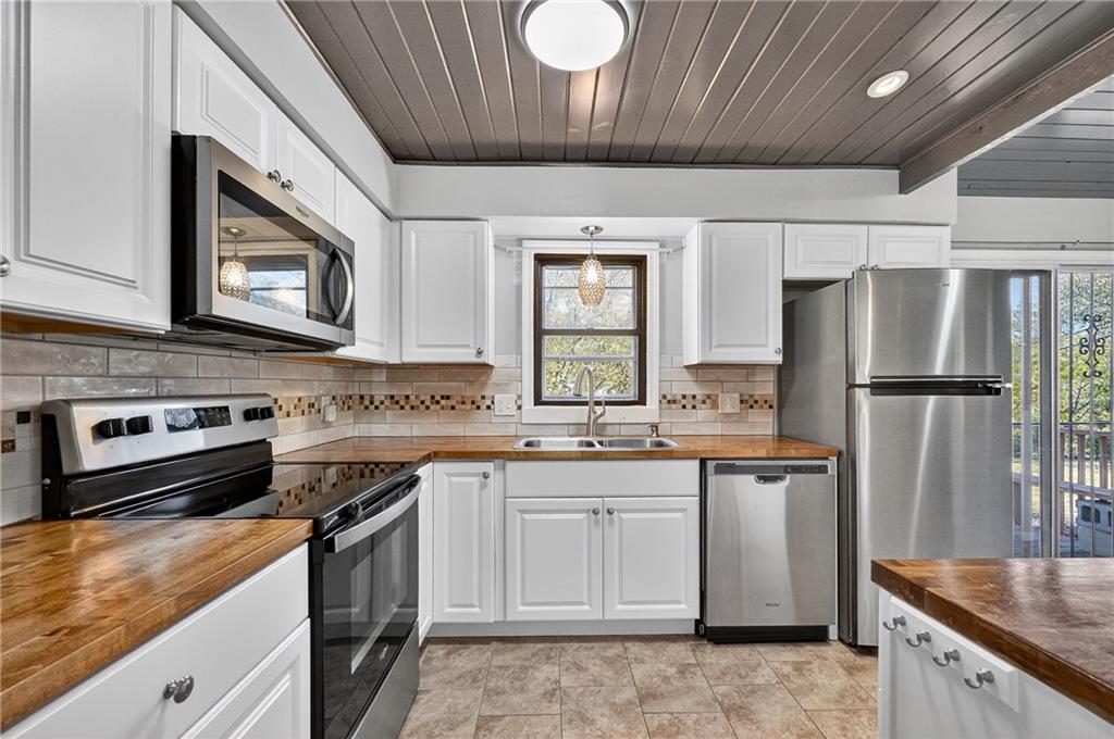 Welcome to this charming raised ranch offering a perfect blend of comfort, style, and privacy. Step inside to find a bright, inviting main level featuring a beautifully updated kitchen with warm butcher block countertops, sleek stainless steel appliances, and an adjoining dining area that opens to a spacious deck with built-in bench seating — ideal for entertaining or relaxing outdoors. This home includes three bedrooms and one and a half baths, providing plenty of space for everyday living. The finished walkout basement offers additional living space perfect for a family room, home office, or gym. Enjoy the convenience of a two-car garage tucked behind the home for added privacy and security. The fully fenced backyard backs to open space with no neighbors behind, creating a peaceful retreat right in the city. With a move-in-ready interior, stylish finishes, and a layout designed for both function and comfort, this home checks every box. All appliances, including the washer and dryer, stay with the property — making it truly turnkey.