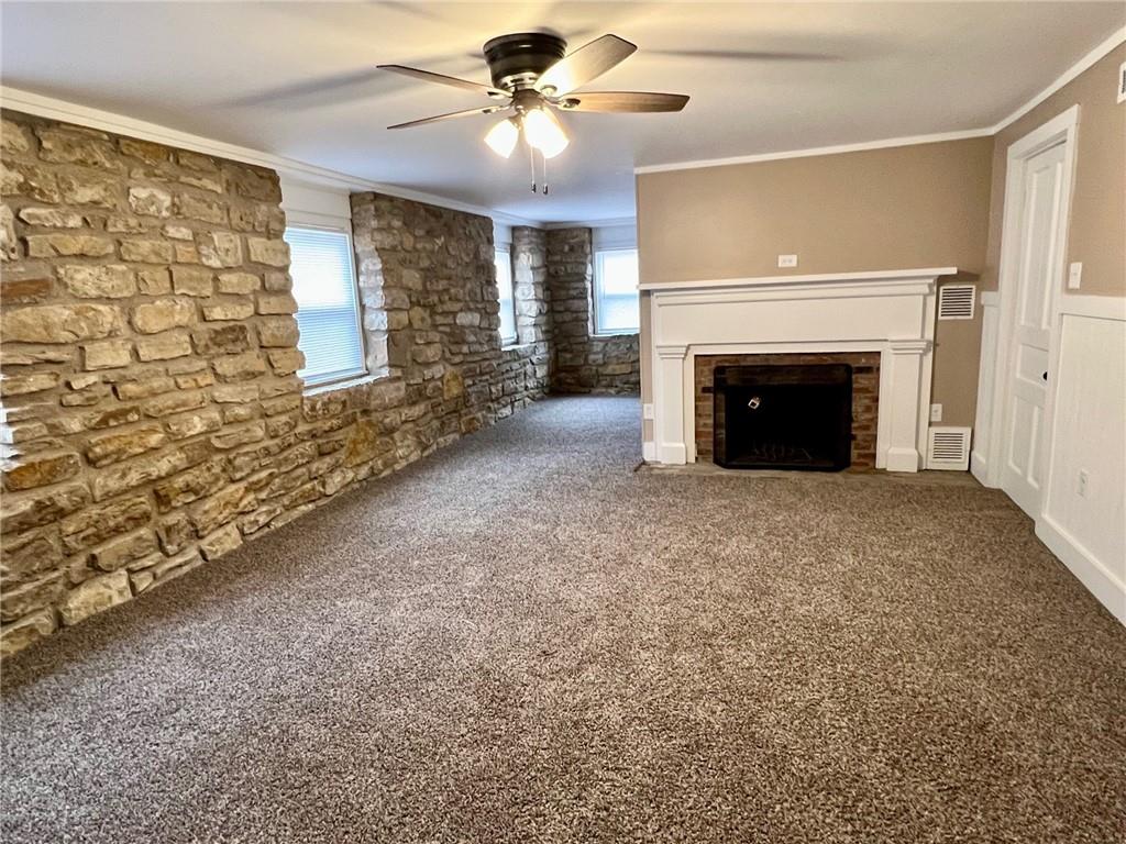 Perfect location so close to I-70 and right on the blacktop. This beautifully restored historic home has views for miles from it's private hilltop setting. Fresh, neutral interior finishes, refinished hardwood floors, new bath fixtures, 2 new furnaces. All bedrooms are large and have wonderful natural light. The pond just east of the house needs some dozer work to make it hold water again but we love the trees, and small pasture between the house and the road. Explore picturesque downtown Odessa and let us introduce you to a slower pace and really caring neighbors.