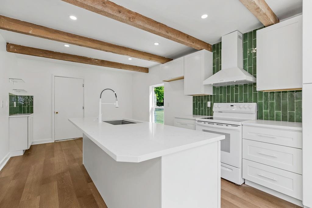 Beautifully renovated from top to bottom! This full rehab offers a custom-designed kitchen with modern finishes, complemented by refinished hardwood floors and LVP flooring in the kitchen and both baths. The primary suite features a walk-in closet and spa-inspired bath with a walk-in shower and double sink vanity. Fresh interior and exterior paint, new windows, and a newly installed paver patio and front porch enhance both comfort and curb appeal. Additional updates include HVAC service, duct cleaning, and complete pest treatment. Enjoy the large, flat backyard with mature trees and no rear neighbors—a cul-de-sac sits just beyond the back fence for added privacy. New landscaping completes this move-in-ready home!
