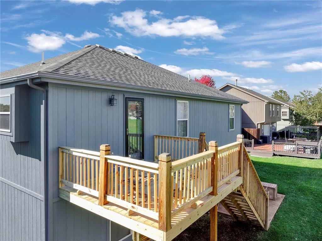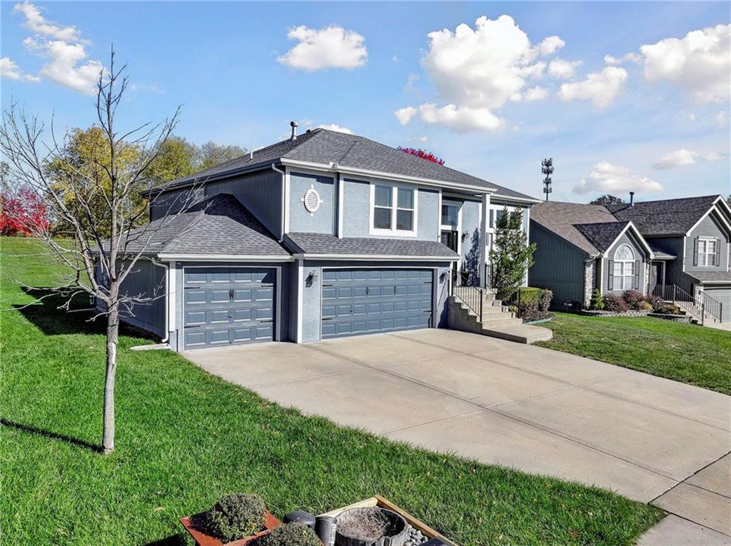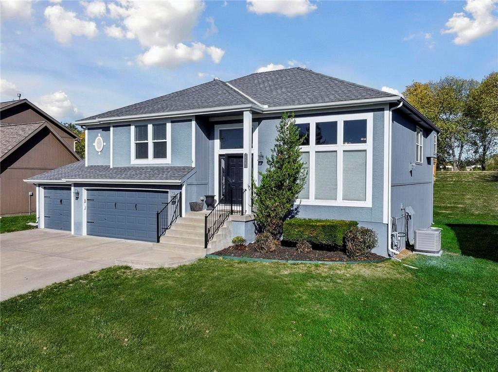This is where the light lives! Open and Airy Floorplan with a Sunny Disposition! Entertainer's will love the large kitchen with granite counters, and spacious dining area with kitchen bar and soaring ceilings in the great room! Updated laminate flooring throughout the main living areas and fresh carpet in the bedrooms! The kitchen has a pantry closet and ample cabinets for storage. All appliances stay including washer and dryer! The Owner's Suite features a large bedroom, oversized bath with a corner jet tub and separate toilet room! Large Walk-in Closet! The Hall Bath connects between both spare bedrooms for private access! The lower level has a recreation room, 4th bedroom and full bathroom. Could be a perfect separate quarters or for guests that can't do stairs, they can enter from the garage and have everything they need! There is a lower sub-basement that is mostly finished and can be used as an office, or workout space or an extra gaming area! There is a nice laundry room with built-in cabinets for storage. The 3-Car garage is 24' deep and there is plenty of garage space for a workbench or additional storage plus 3 cars! The upper deck has new deck boards and stairs and the home has fresh paint, and newer HVAC System! Large Patio off the Recreation Room for more entertaining space! Perfect location in Liberty, just blocks away to Grocery, Post Office, Library and the Liberty Community Center! Coveted Liberty School District! Just across Withers Road is the Canterbury Walking Trail System, Play Area and Pickle Ball Courts! Take the back way on South Liberty Parkway to I-35 & Pleasant Valley Road or the Flintlock Fly Over to get to KC side shopping in a breeze! Head into Liberty Square for a unique shopping and restaurant experience! There is an active HOA /restrictions in the neighborhood. Don't hesitate! Look at this unique opportunity today!
