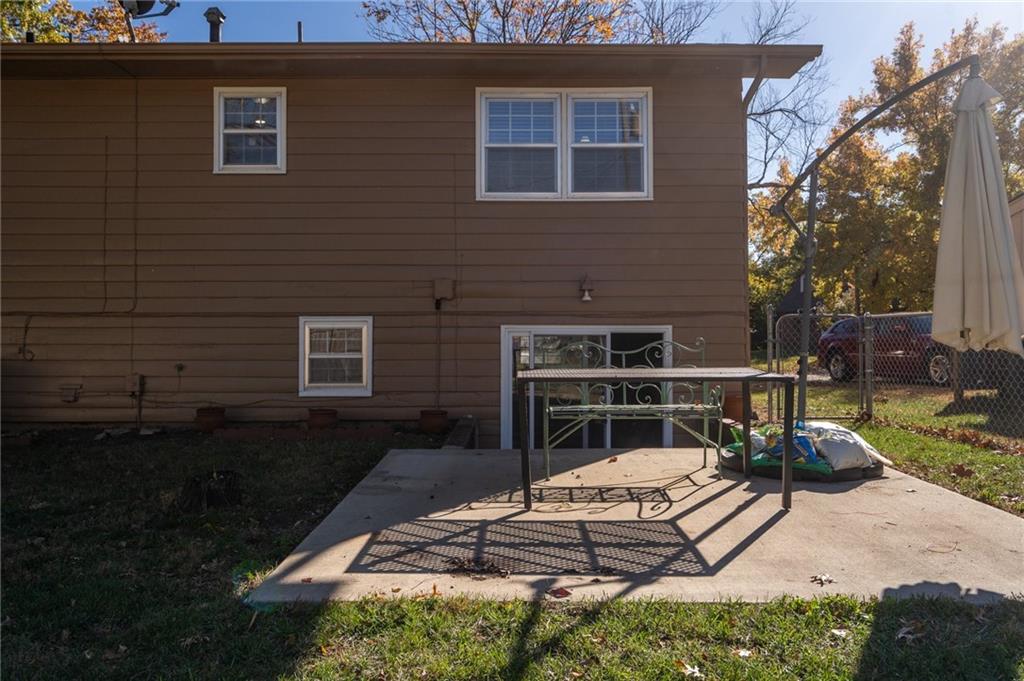 3 Bedrooms | 2 Bathrooms | 2-Car Garage | Fenced Yard | Move-In Ready Tucked away on a cul-de-sac in a convenient west-Lawrence location, this charming split-level home offers comfort, space, and value. Step inside to beautiful hardwood floors flowing through the bright living and dining area. The spacious kitchen features updated stainless-steel appliances, solid wood cabinetry, tile flooring, and plenty of counter space for meal prep or entertaining. Upstairs, you’ll find three comfortable bedrooms and a refreshed full bath with modern tile surround. The lower-level family room with a cozy brick fireplace and exposed beams creates a perfect second living space, playroom, or home office. Enjoy outdoor living in the large fenced backyard complete with a patio, mature shade trees, and a new storage shed—ideal for gardening tools or hobbies.