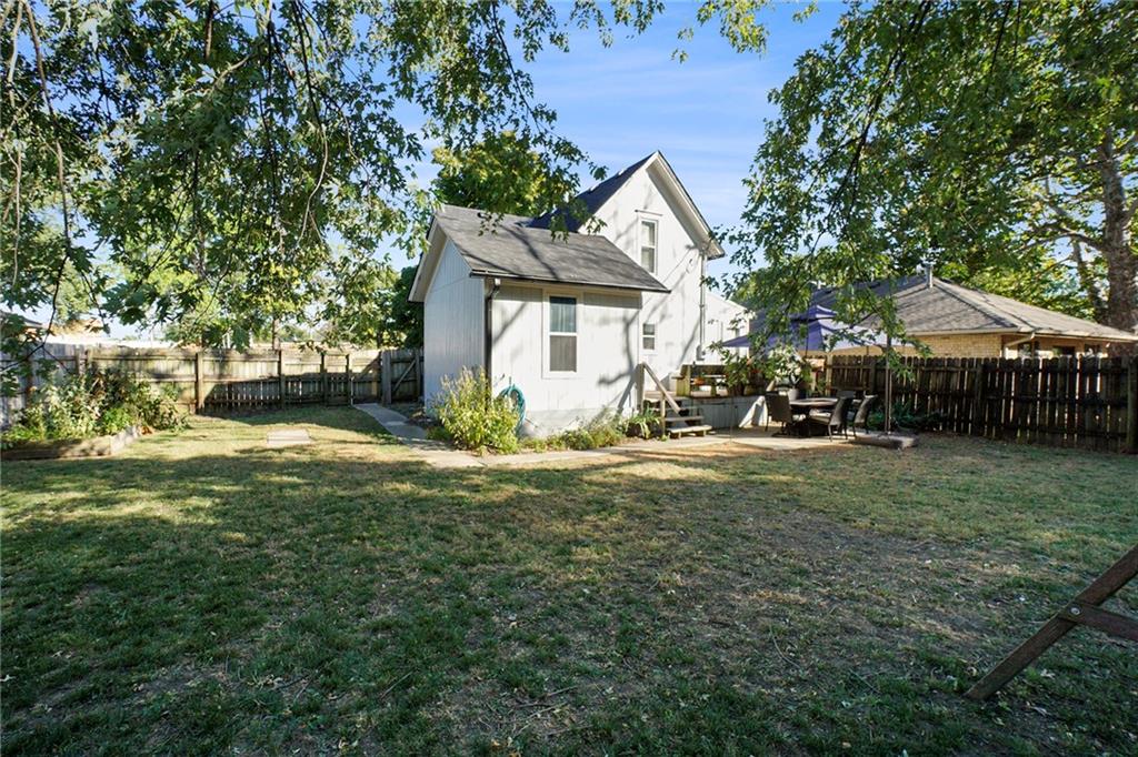 Charming, updated farmhouse in the heart of town! This 3-bedroom, 3-bath 1.5 Story Home blends character and modern comfort from the moment you step through the front door. One of the oldest homes in Louisburg, it has recent major updates including NEW Roof 2 years, HVAC system and water heater 4 years ago!!! The open main level features a light-filled living and dining space with neutral tones and cozy carpet, flowing easily into the kitchen. You’ll love the stylish updates — white cabinetry, granite counters, tile backsplash, and sleek stainless steel appliances. Upstairs, spacious bedrooms offer warmth and charm, with unique ceiling angles and large windows bringing in natural light. Both bathrooms are beautifully maintained, with clean finishes and thoughtful storage. Step outside to enjoy a private fenced yard, perfect for gatherings or playtime under the shade of mature trees. A large deck provides plenty of room for grilling or relaxing, and there’s a shed for added storage. With its inviting front porch, modern updates, and convenient location near shopping, dining, and parks — this home is the perfect mix of classic charm and everyday functionality!