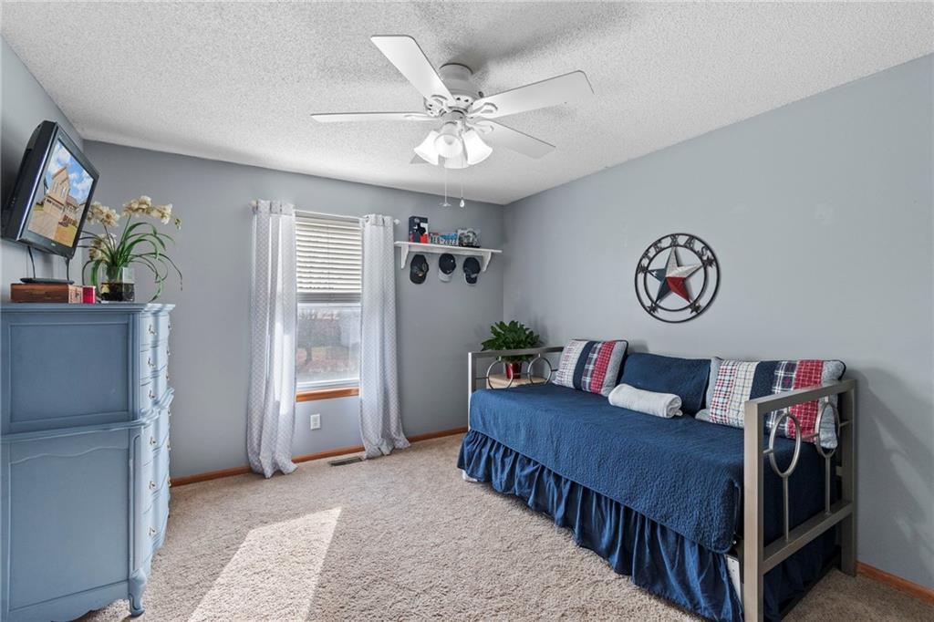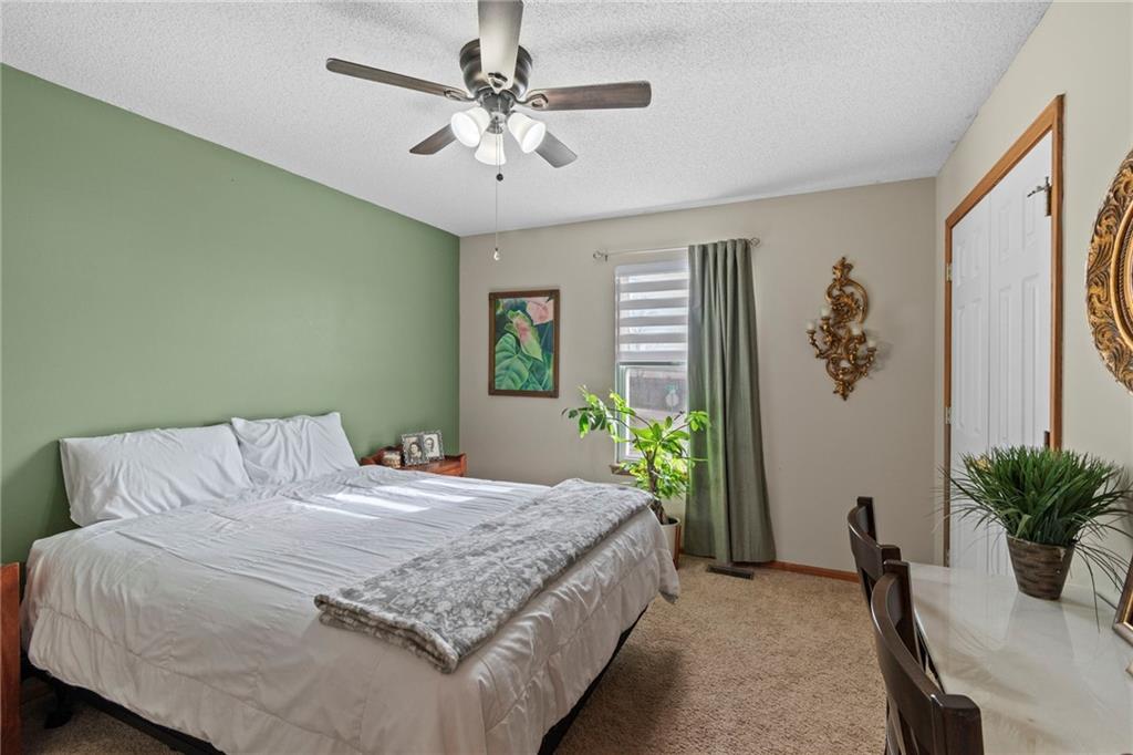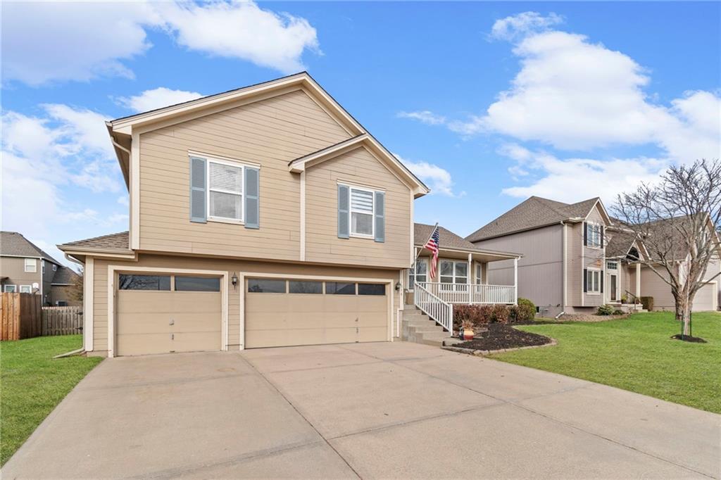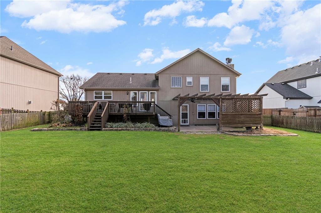 Welcome to this beautifully maintained home featuring standout curb appeal, beginning with a welcoming covered front porch—perfect for morning coffee or quiet evenings outside. Step inside to a thoughtfully designed main level that offers comfort, space, and style. The updated kitchen is a true highlight, showcasing granite countertops, abundant workspace, a stone tile backsplash, a pantry with roll-out shelving, and stainless-steel appliances. The adjacent living room boasts high ceilings, creating a bright and open feel, while the dining room conveniently walks out to the deck, making indoor-to-outdoor living effortless. Head downstairs to the inviting family room, complete with a cozy gas fireplace. This level walks out to a fantastic patio with a pergola and privacy wall, extending your living space into the outdoors. Upstairs, retreat to the oversized primary bedroom featuring a walk-in closet and a bright, spacious primary bathroom with natural light, dual sinks, and a whirlpool tub. Additional storage is available through the attic access in the primary bedroom! Two additional bedrooms and bedroom-level laundry add ease and functionality. The home also offers a lower-level rec room, perfect for movie nights, hobbies, or hosting friends. This space includes a cedar closet with built-in cabinetry and a storm shelter/additional storage. Plus, the pool table stays! Outside, the flat, fenced yard is ideal for entertaining, play, pets, or simply enjoying the outdoors. This home delivers generous living spaces inside and out—don’t miss the chance to make it yours!