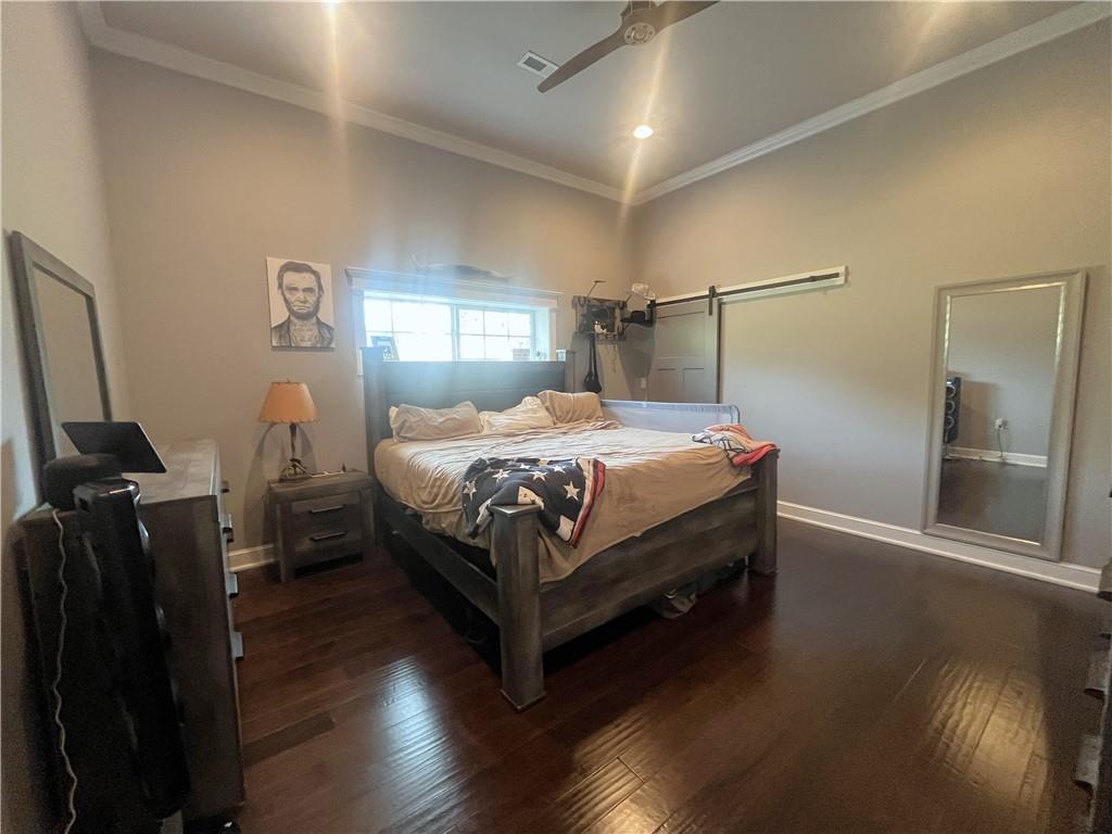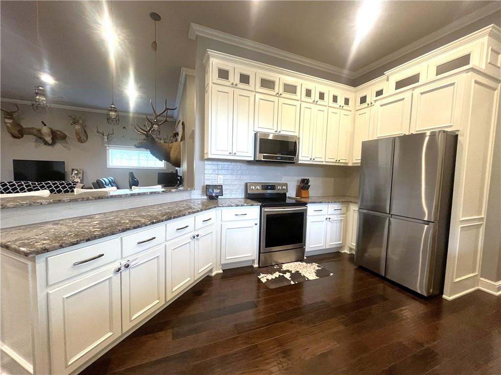 This beautifully crafted 2,200 sq ft ranch-style home, built in 2017, offers the perfect blend of privacy, convenience, and timeless design. Nestled just off the highway in a secluded setting, this 4-bedroom, 2.5-bath residence features an open-concept layout ideal for both relaxed living and effortless entertaining. Step inside and be greeted by custom woodwork, rich hardwood floors, and granite countertops that elevate every space. The 36” wide doorways provide a spacious, accessible flow throughout, while the striking 8’ tall front door makes a bold and elegant first impression. Outside, the property unfolds across 12.58 acres complete with timber trails, a stocked pond, and a versatile patio perfect for gatherings. The attached three-car garage adds convenience and storage.