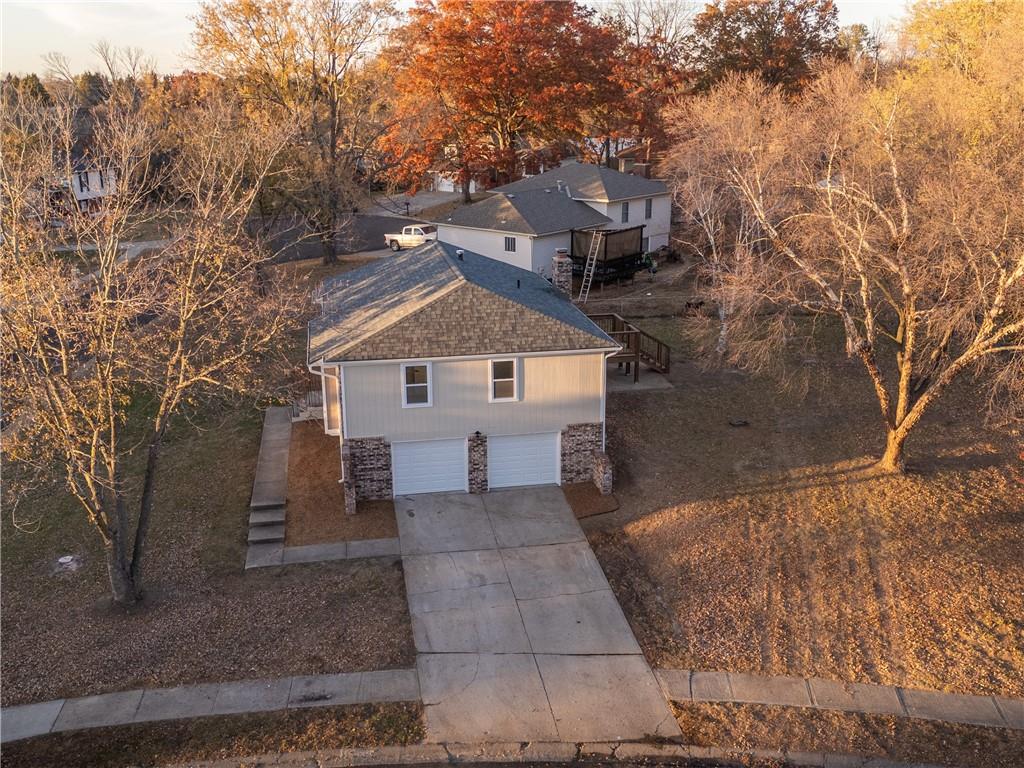 This beautifully renovated home offers the perfect blend of comfort and character. Modern updates throughout make this home feel truly move-in ready. The great room with vaulted ceiling and gas fireplace opens to the kitchen with granite counters, brand new stainless appliances, pantry, white cabinets and breakfast area. Primary suite features a private bath with tile shower. Two additional bedrooms, 2nd full bath with tub/shower and formal dining room/office space are also on the main level. The finished lower level includes a family room, laundry and additional storage space. Oversized garage with plenty of room for a workbench! The deck overlooks a level backyard with mature trees. Located on a quiet cul de sac and close to highways, shops, dining and Top Rated Blue Springs Schools!