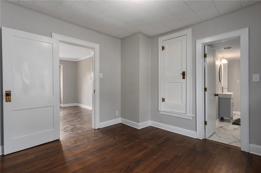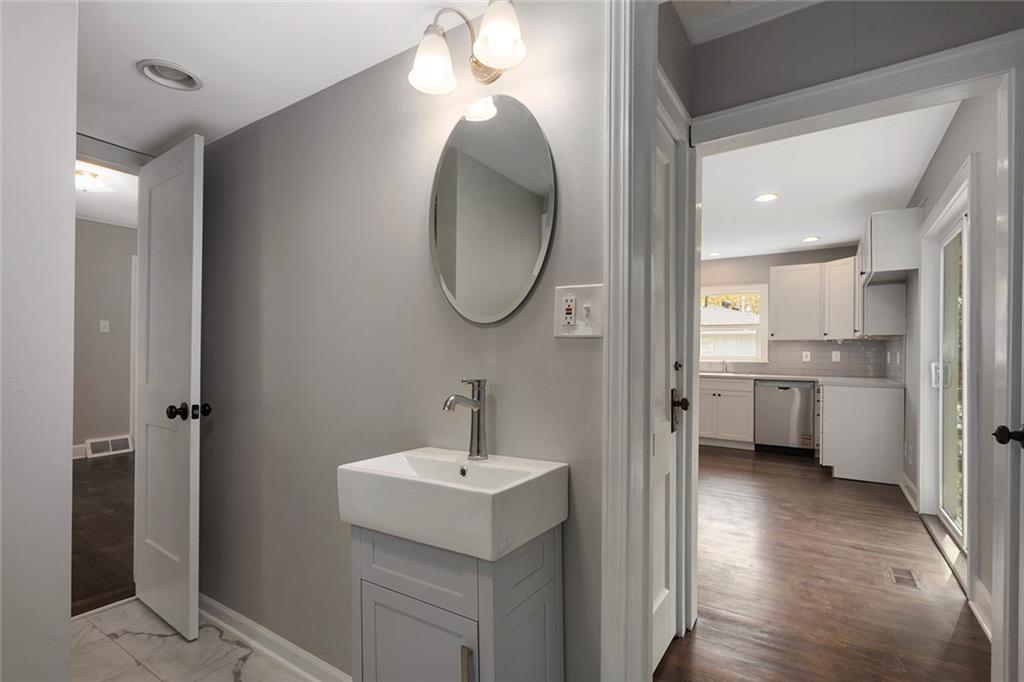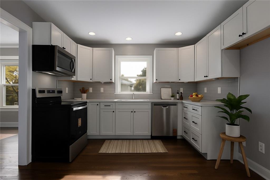 Overland Park address off Merriam Drive near I 435 & I 35. Remarkable home that has been in the same family for 80 years and passed through multiple generations. Third generation grandson and spouse recently rehabbed this adorable bungalow. The original wood floors have been refinished. Brand NEW KITCHEN everything!!! White cabinetry, solid surface countertop, subway tile, ss appliances, ss Kraus sink and under-cabinet accent lighting. The main rooms are very generous and there are 2 bedrooms and 2 full bathrooms (one complete remodel and one all new (except for shower). Full basement with new wall separating the potential woman/man cave from the New concrete floor in tandem garage. Wow! Covered front porch in front and deck with steps in the back. New 200amp and mostly new wiring. New A-coil and furnace, A/C 5 years old. Roof, gutters and soffits new. Older, but double-hung replacement windows, new slider to deck, new safety glass in basement windows. Pro photos in 24 hours.
