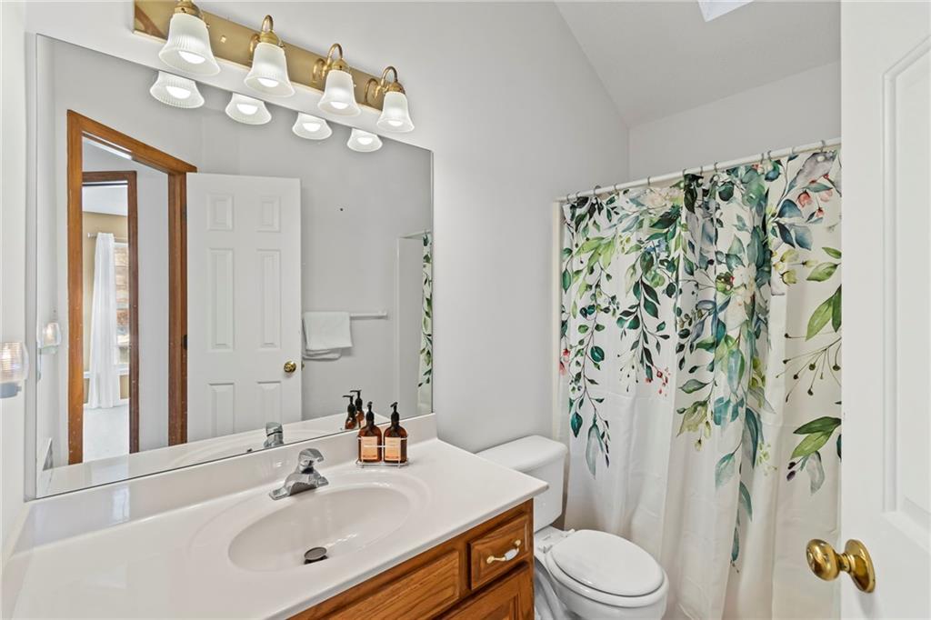 You do not want to miss this adorable true ranch home, offering three bedrooms and three bathrooms, nestled in a quiet cul de sac in Woodbury Park…and just a short distance from Lees Summit North High School! This home has been lovingly lived in and it shows. Natural light pours in through every room, the vaulted ceilings and cozy fireplace create such an inviting feel, and the clean neutral palette makes it so easy to make the space your own. The kitchen is spacious and functional with plenty of cabinet storage, and the bump out window above the sink is such a lovely feature for plants or decor. Even better, accessing the kitchen directly from the garage makes the task of unloading groceries an absolute breeze. The bedroom layout is thoughtful and comfortable, with a hall bathroom serving the two secondary bedrooms and the primary suite offering its own private ensuite. The walkout basement adds even more usable space with a full third bathroom and room for a home office, recreation, entertaining, or all of the above! Outdoors, you will love the established and thoughtfully placed landscaping. Enjoy the view of it all from the deck, which was replaced in 2019 and refreshed in August 2024…with a full power wash, restain, and seal! Major updates include: A/C replaced in August 2024, furnace replaced in January 2022, new microwave installed in October 2025, and substantial driveway repair in November 2025. Beautifully maintained and move in ready, this home truly delivers comfort, updates that matter, and a fantastic location!
