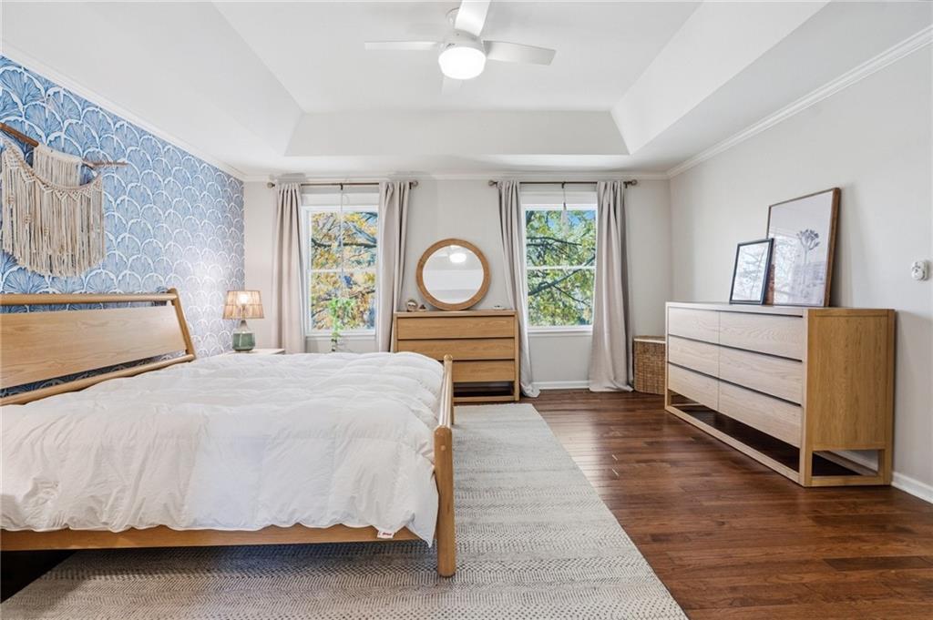Welcome home to this beautifully updated 5-bedroom, 4-bathroom residence perfectly situated on a desirable corner lot in a quiet cul-de-sac. From the moment you arrive, you'll appreciate the home’s thoughtful design, quality finishes, and inviting atmosphere. Inside, the floor plan welcomes you with abundant natural light and Hickory hardwood floors that flow seamlessly throughout the main living spaces. The spacious living room, comfortable family room, and expansive recreational room offer plenty of space for both everyday living and entertaining. Pella windows and a sliding door enhance energy efficiency while framing serene views of the surrounding neighborhood. With numerous updates throughout, this home blends warmth and style, creating a space that feels both elegant and comfortable. This home offers a perfect combination of charm, functionality, and modern appeal — ready for you to move in and make it your own.