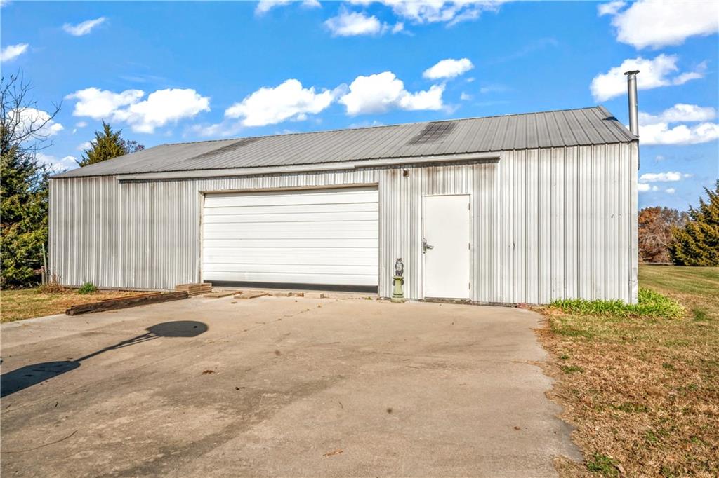 Move in ready, newly remodeled home, two living rooms! 3 Bedroom 2 bath, laundry on the main level. 1900 sq ft all vinyl flooring. 4 year old roof, Brand new gutters, gutter guards, all new windows and a 2 year old true heat pump HVAC, beautiful 4 acres lightly treed. 20 x 40 outbuilding with concrete floors and electric. Enjoy Johnson County Missouri low taxes