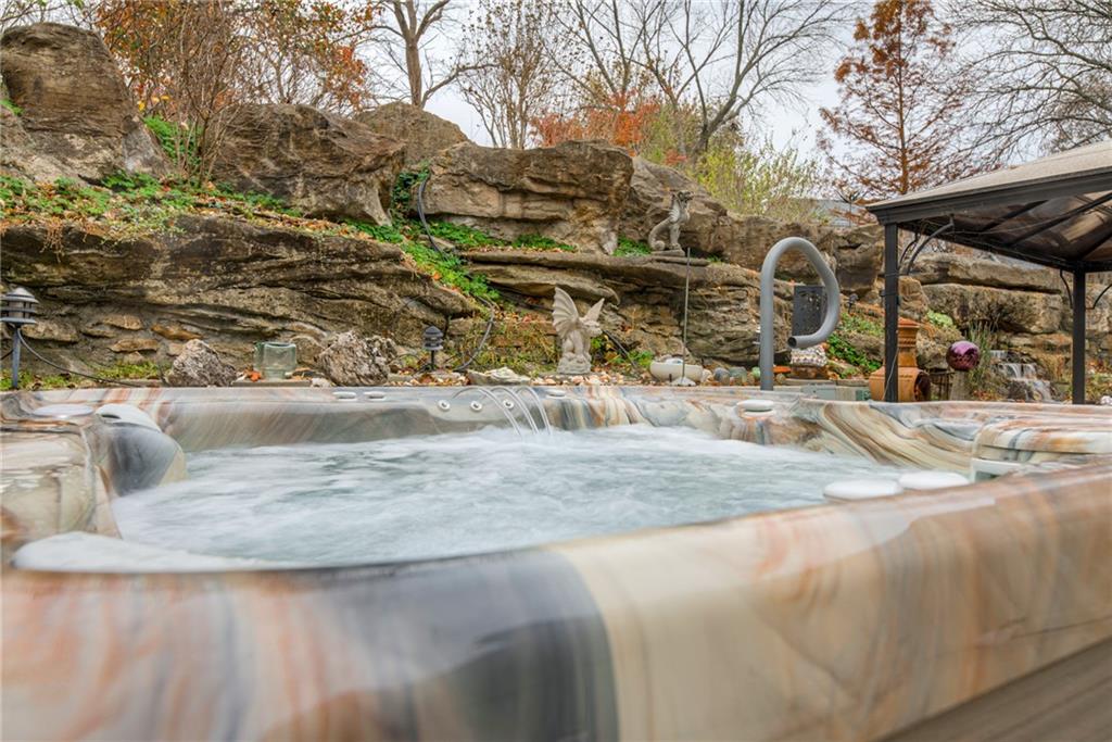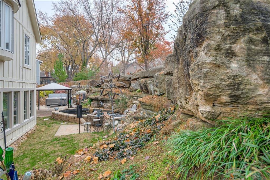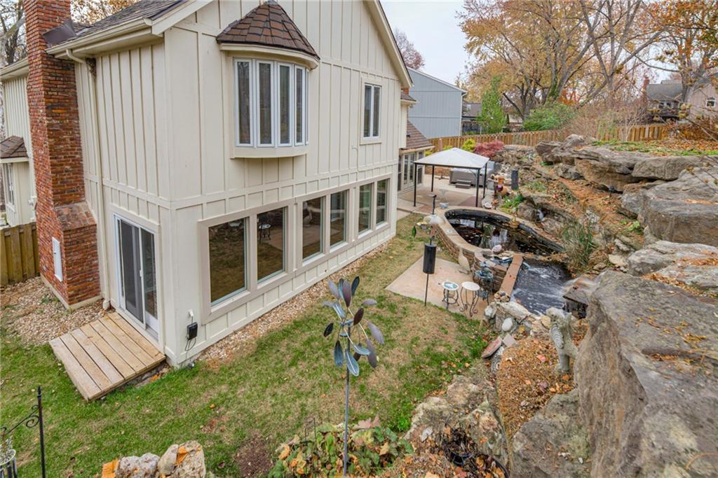 One-of-a-Kind 2-Story with Turret & Backyard Oasis! Fall in love with this unique and beautifully updated 4-bedroom, 3.1-bath home full of charm and character! The striking turret sets the tone for this distinctive property, while the backyard delivers a true private retreat—beautifully landscaped and featuring a large koi pond with waterfall, relaxing hot tub, covered Gazebo and lush surroundings. Inside, you’ll find thoughtful updates throughout. Newer HVAC, New Roof, The kitchen shines with painted cabinets, added pantry, newer quartz countertops, new appliances, newer wood floors and an induction cooktop with vent hood. The entryway has new stair carpet on the stairs and hallway. The expanded primary suite includes a sunny window seat, walk-in closet and additional cedar closet, an updated spa-like bath with therapy tub, solid-surface shower, and a private sauna for ultimate relaxation. Entertain in style in the large living room with sunroom and wet bar, or head downstairs to the mostly finished lower level featuring a second wet bar, wine cellar, full bath, and tile flooring—ideal for gatherings or a private guest retreat.