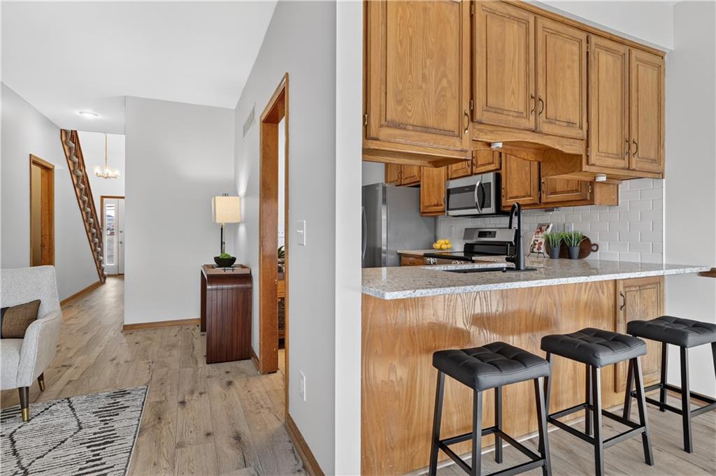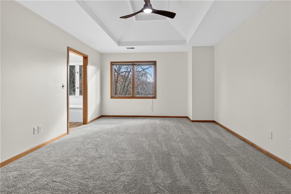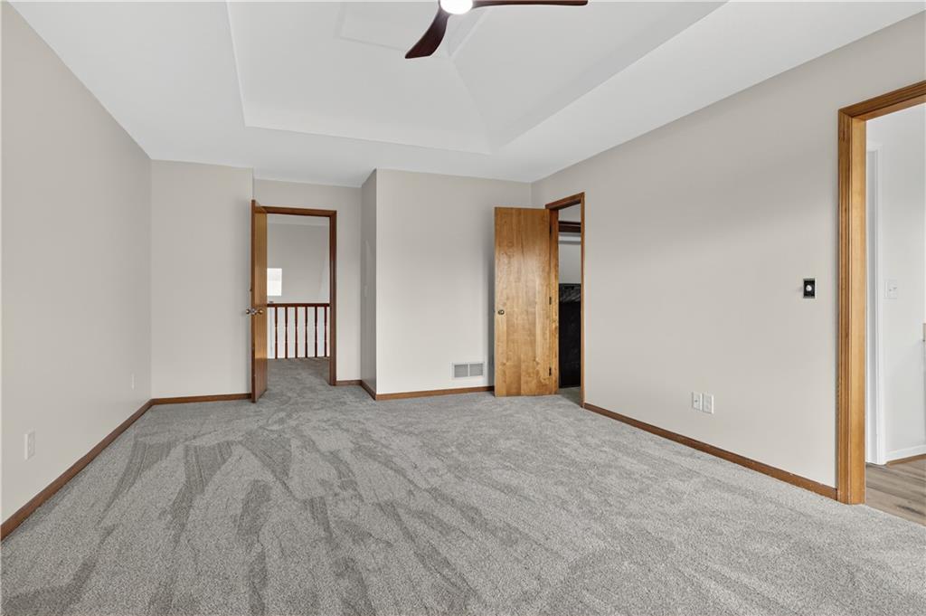 Enjoy maintenance-free lake views with your morning coffee from the updated back porch of this spacious, beautifully refreshed townhome! This light-filled home has just been extensively updated (November 2025) with brand-new LVP flooring on the main level and bathrooms, new carpet on stairs and 2nd level, and fresh interior paint throughout. Electrical and plumbing systems have been repaired and updated as needed, offering peace of mind for the next owner. The kitchen shines with new countertops, backsplash, new appliances, new flooring and updated light fixtures. Bathrooms feature new toilets and flooring—everything is fresh and move-in ready. Upstairs, you’ll find two oversized primary suites with private bathrooms—one with a whirlpool tub and separate shower—each with generous walk-in closets. A cozy loft with a skylight overlooks the entryway, adding to the home’s bright, open feel. The unfinished basement features tall ceilings and an egress window, giving you the option to easily finish add 500+ sq ft of finished living space and a conforming third bedroom. Tucked away on a quiet cul-de-sac backing to greenspace and a peaceful lake near the thriving Tiffany Springs area, this home offers mature trees, colorful landscaping, and a truly serene setting within the top-rated Park Hill School District.