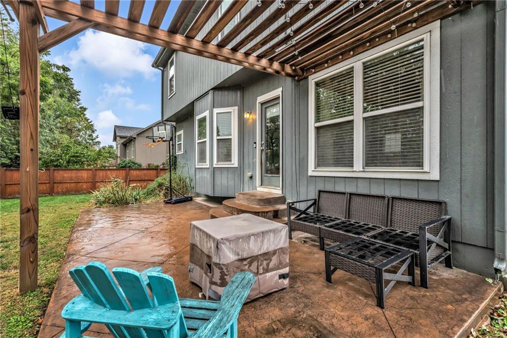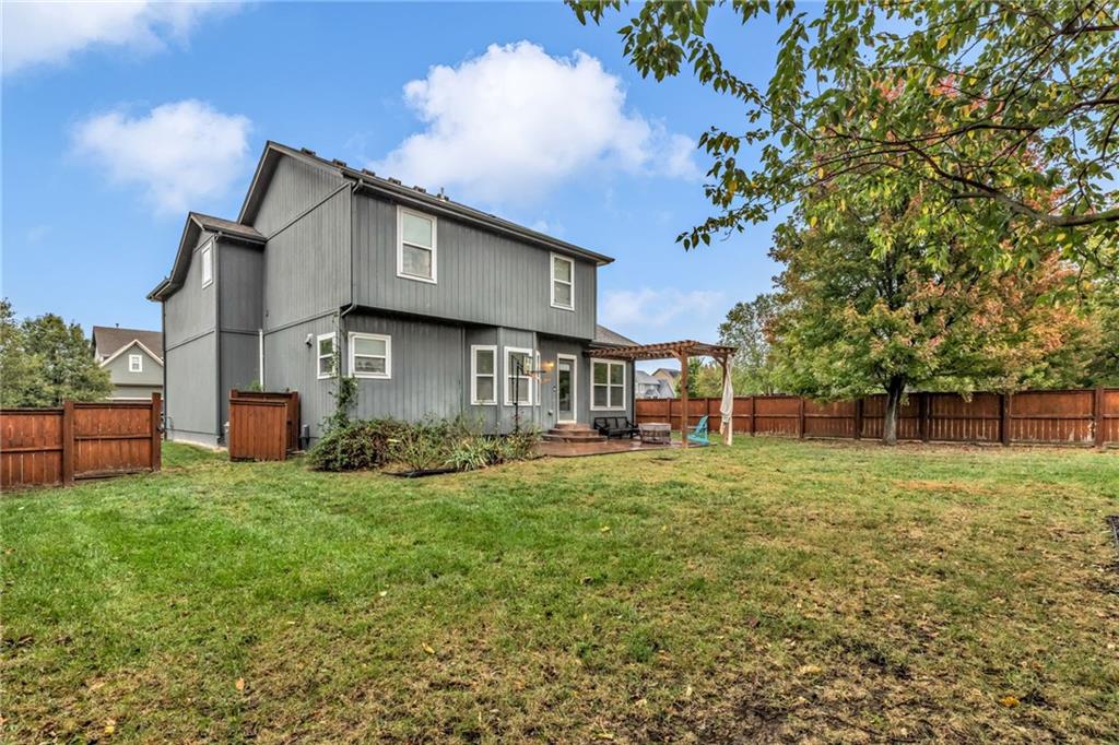 This inviting 4-bedroom, 3.5-bath home is perfectly positioned on a spacious corner lot at the end of a peaceful cul-de-sac. From the moment you step onto the large, welcoming front porch, you’ll feel right at home. Inside, the open-concept great room and kitchen offer the ideal layout for both everyday living and entertaining. Upstairs, you’ll find the expansive primary suite featuring a private sitting area, a grand walk-in closet, and a luxurious bath complete with a jetted tub and separate shower. Two additional bedrooms share a stylish Jack and Jill bath, and the convenient upstairs laundry closet makes everyday living even easier. The finished lower level provides additional living space with a bedroom, full bath with heated tile floors, a bar area with heated tile, and a large recreation room—perfect for game nights or movie marathons. Step outside to enjoy the fenced backyard complete with a storage shed, rubber-mulched play area with a clubhouse, and a beautiful stamped concrete patio with pergola—ideal for relaxing or entertaining outdoors. Additional highlights include a 2-car garage, lawn irrigation system, water softener, and a radon mitigation system already in place. Walking trails just behind the home lead to two parks and the neighborhood pool. Conveniently located near highly rated schools, shopping, dining, and parks, this home truly has it all! OPEN HOUSE SATURDAY 11-1 and SUNDAY 1-3