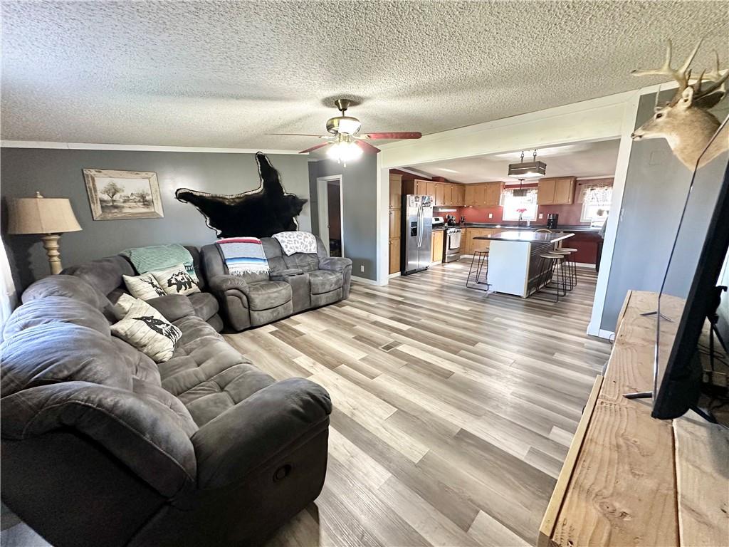 You don't want to miss this adorable 3 BD, 2 BA home on 4 acres....on blacktop! Ready to move into & updated throughout. Open floor plan. The kitchen features a kitchen island, ample storage & stainless steel appliances that stay! (refrigerator, gas stove, dishwasher & microwave) The laundry room is off the kitchen (washer & dryer stay). The living room is open to the kitchen. Entertainment center with fireplace stays! The master bedroom has a walk in closet and a spacious master bathroom featuring a shower & a garden tub. The two additional bedrooms are on the other side of the house, along with the 2nd full bathroom. You will love sitting on your covered deck watching the kids run and play or just having your morning coffee. Metal roof. 2 car detached garage w/concrete floors & electric. Storage shed.