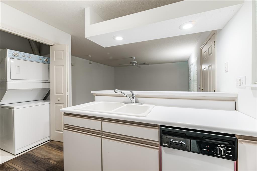Move right into this affordable condo! The open-concept layout welcomes you with fresh paint, and durable vinyl plank flooring and carpet. The kitchen offers a convenient breakfast bar, and all appliances - including a stackable washer and dryer - are included. Both bedrooms are generously sized and feature walk-in closets and private bathrooms, and ideal for guests or roommates. Enjoy the large enclosed porch with a ceiling fan, storage closet and peaceful, tree-lined top floor views. Dedicated covered parking next to entrance, along with ample visitor parking. The professionally managed HOA takes care of water, sewer, trash removal, snow removal, lawn care and exterior maintenance and insurance. Conveniently close to shopping, dining, highways, the airport and downtown. Buy now and celebrate the holidays in your new condo!