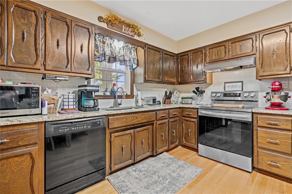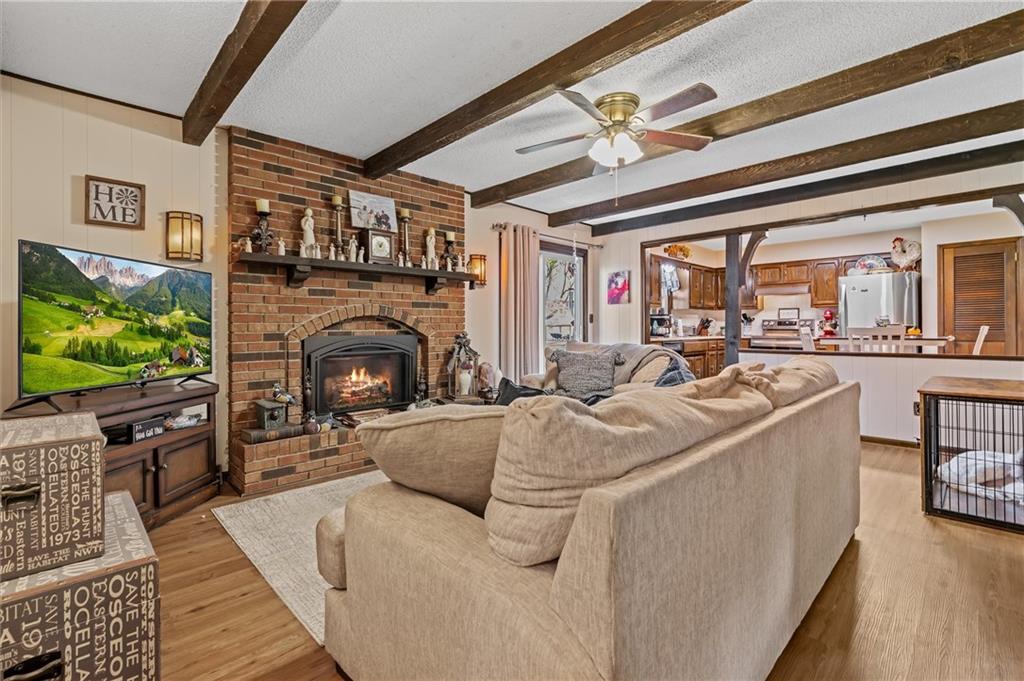 Located in a desirable neighborhood, this 3 bedroom, 2.5 bath home sits on a generous half-acre lot m/l with mature trees. Featuring a classic brick front and vinyl siding, the home offers a cozy fireplace, formal living and dining rooms, and updated kitchen countertops. The master bath boasts a custom tile shower, adding a touch of luxury. Enjoy outdoor living on the patio, and take advantage of the partially finished basement with a wet bar for entertaining. This home is the perfect blend of comfort and convenience!