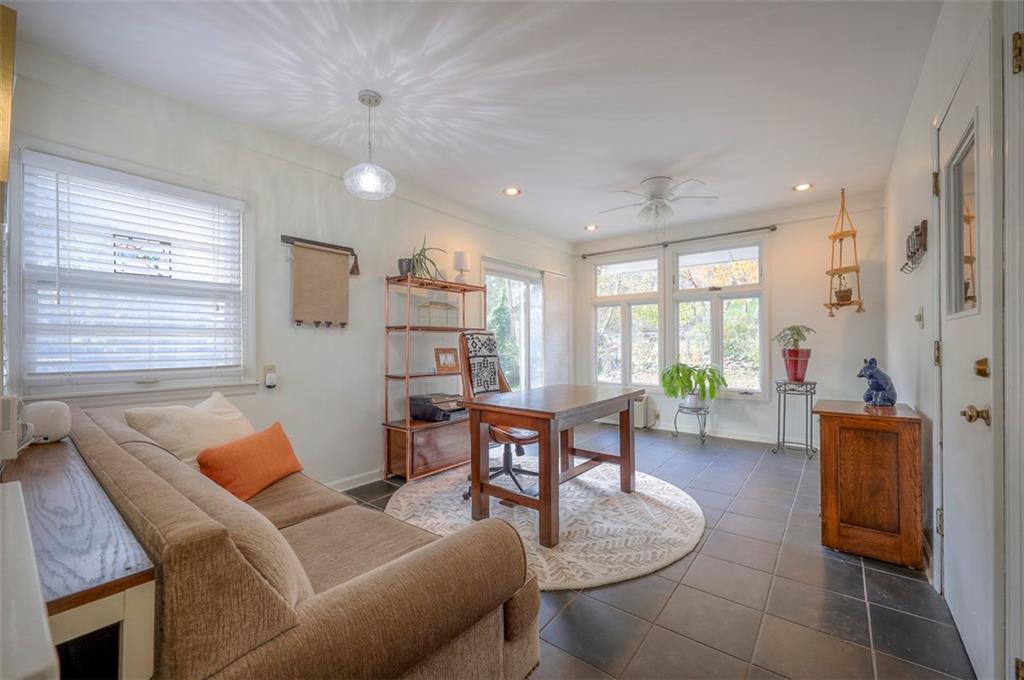 This home has had several updates by the current owner such as quartz counters in the kitchen and added a dishwasher and microwave and refrigerator that stays. The bathroom on the main floor has also been updated and the main floor has all wood floors throughout! The large sunroom with large windows off of the kitchen is a perfect gathering place in the summer or to watch snowing in the winter with a large slider opening to the fenced yard! The HV/AC was replaced just two years ago and the roof was replaced just eight years ago. The one car garage that faces the front has a double wide driveway for parking and on the side of the house there is another driveway that leads to the second garage. An oversize workshop is in the basement next to the garage entrance. The outside of the home does have some peeling paint and is being sold in that condition. OPEN HOUSE SUNDAY (11/16) 12:00-2:00