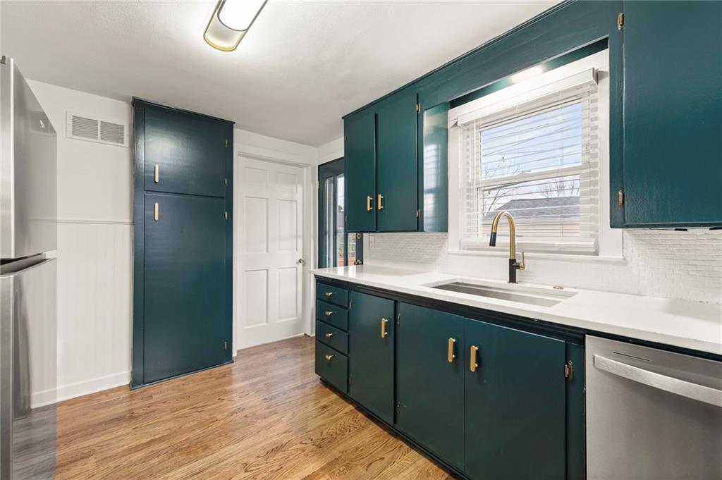 Traditional Charm, Modern, Sleek, and Elegant! Completely Remodeled, Corner Lot Bungalow in highly desired NKC! 3 Bedrooms, 2 FULL Baths & 1/4 Bath with Vanity and Optional Stackable W/D on Main Floor! Rare TWO-CAR GARAGE - NEW GARAGE DOOR 11/28 BY OVERHEAD DOOR! Refinished new and original hardwood floors, Kitchen featuring NEW SS Appliances, Quartz Counters, painted cabinet, dining room is now an entertainer's dream with custom cabinets, dining room with custom cabinets and added wetbar, quartz counters, & designer backsplash! All new light fixtures, plumbing, and hardware throughout! New bathroom vanities on main floor. NEW ROOF, NEW GUTTERS, AND WINDOW WRAPS! $10k of professional landscaping, stained fencing and NEW DECK! Additional attic insulation. Move right in and enjoy the conveniences of walking distance to Macken Park, All of NKC's Popular restaurants and shops, I-35 is near and be anywhere in the city in a flash! There is so much to love about the remarkable NKC home! Love where you live in this spacious, rare bungalow! OWNER/AGENT!
