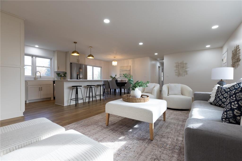 Shows great with all new!!! Spectacular home with new exterior & interior paint. Open plan with new electric fireplace in the Living room opening to the Spacious Kitchen and Breakfast Area. Quartz counters & Island. New Cabinets & drawers, sink, fixtures, appliances. 3 sizeable bedrooms on the main floor. New Hall Bath. New Primary Bedroom Bath. Full finished Rec Room. Huge deep Oversized 2 car side entry garage. Brand New 23x14 Deck overlooking the large privacy fenced back yard. New front deck/porch. Central air 3 years, Furnace 5 years, Hot water heater 2 years. Nice quiet neighborhood with easy access to I-70 Hwy and shopping. This a beautiful newly refinshed home!